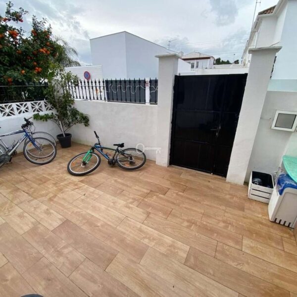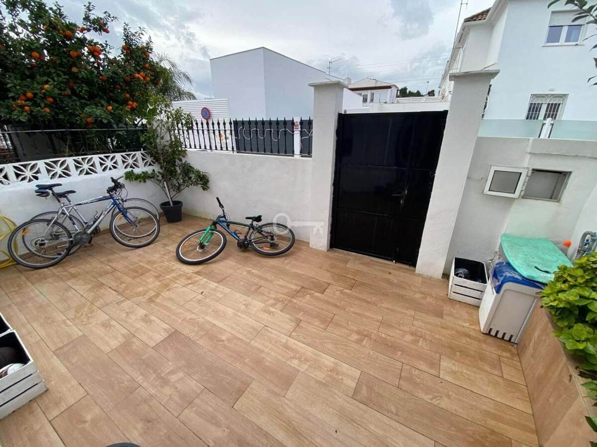 Excellent semi-detached villa for sale in Los Boliches. It sits on a 122 m² plot and has 135 m² of living space. The property features 4 bedrooms and 2 bathrooms, distributed as follows: the ground floor comprises an open-plan entrance hall, living-dining room, and kitchen, plus an additional bedroom (currently used as an office), a bathroom, and a storage room. The upper floor comprises 3 bedrooms and 1 bathroom. The ground floor also includes a terrace at the entrance and another accessible from the living room. The location is superb, with all amenities nearby and excellent access to the motorway. There are no community fees.