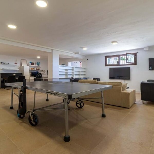 Entrance hall, storage room, en-suite bedroom, two additional bedrooms sharing a bathroom, 90 m² multi-purpose room (cinema, gym, etc.), and a guest apartment with en-suite bathroom and kitchenette.