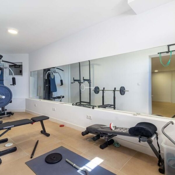 Multiple terraces, interior patio with fountain and mature citrus trees, glazed porch with panoramic sunrise views year-round, summer dining area for up to 14 guests with outdoor kitchen and guest toilet. A separate 35 m² garden studio (currently used as a yoga room) sits within a 230 m² garden area and has independent street accessideal as an office or creative space. The mature garden features species over 40 years old.