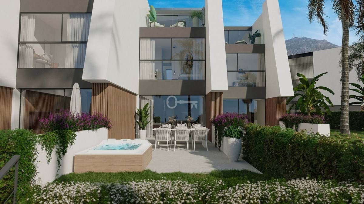 Te imponujące domy, rozmieszczone na 4 piętrach, zapewniają 3 sypialnie, 2,5 łazienki, obszerną piwnicę, prywatny parking, ogród, solarium i wiele tarasów.