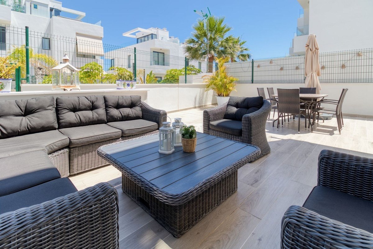 Ta wyjątkowa kamienica z 3 sypialniami oferuje idealne połączenie nowoczesnego designu, przestronnych przestrzeni mieszkalnych wewnątrz i na zewnątrz oraz doskonałej lokalizacji zaledwie kilka minut od plaży i uroczego centrum Fuengiroli. Położony na terenie prywatnej zamkniętej społeczności, ten dom jest idealny, niezależnie od tego, czy szukasz rezydencji na pełny etat, wakacyjnego wypadu, czy inteligentnej inwestycji na Costa del Sol.
