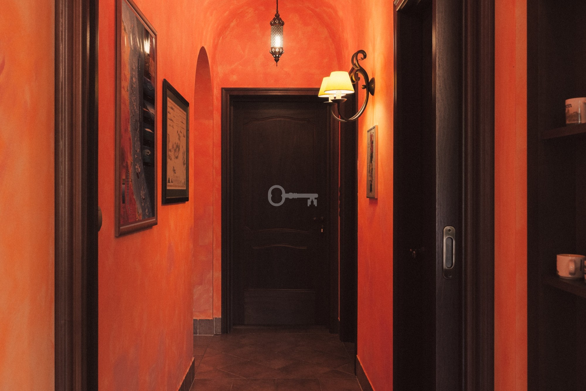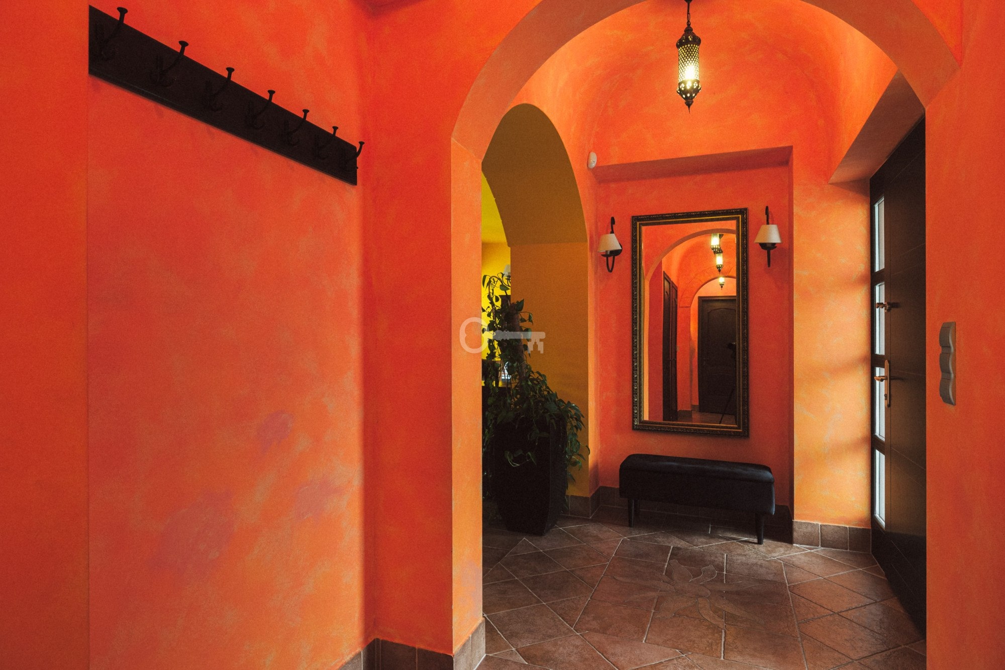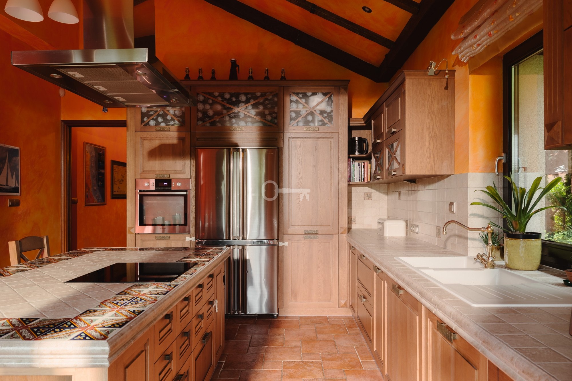 Wnętrze domu zostało wykończone materiałami najwyższej jakości, a ich ciepłe barwy i struktury, zastosowane w całym wnętrzu, sprawiają, że wnętrze jest ciepłe, przytulne, i niezwykle spójne w swojej oryginalnej aranżacji.