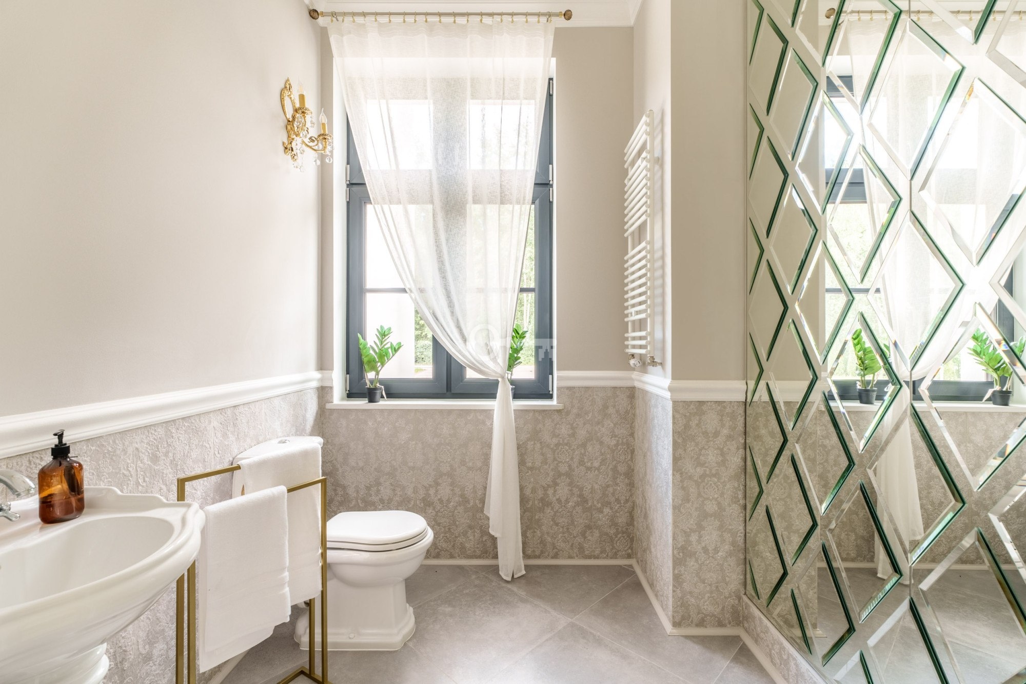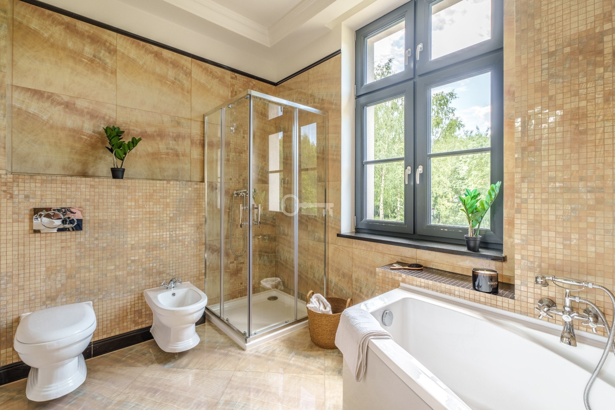 Najwyższej jakości elementy wykończenia wnętrz, sztukateria, kompletnie wyposażona i świetnie zaprojektowana kuchnia i stylowe łazienki dopełniają obrazu ekskluzywnej posiadłości.