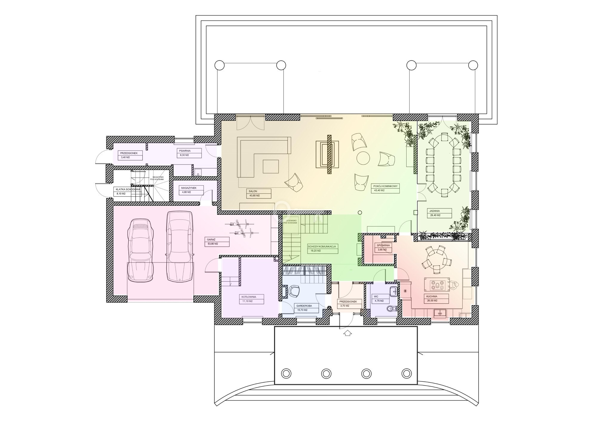 * pomieszczenie techniczne z prywatną łazienką oraz osobnym wyjściem na ogród.