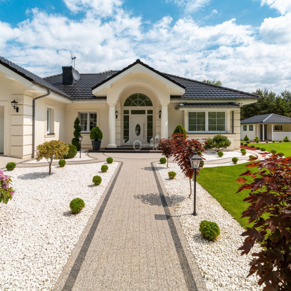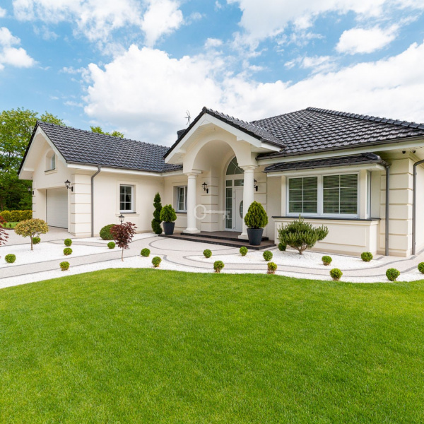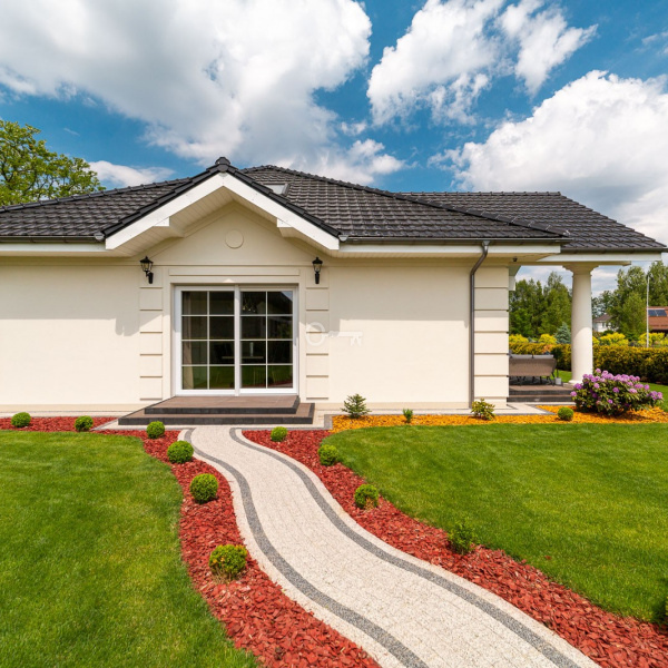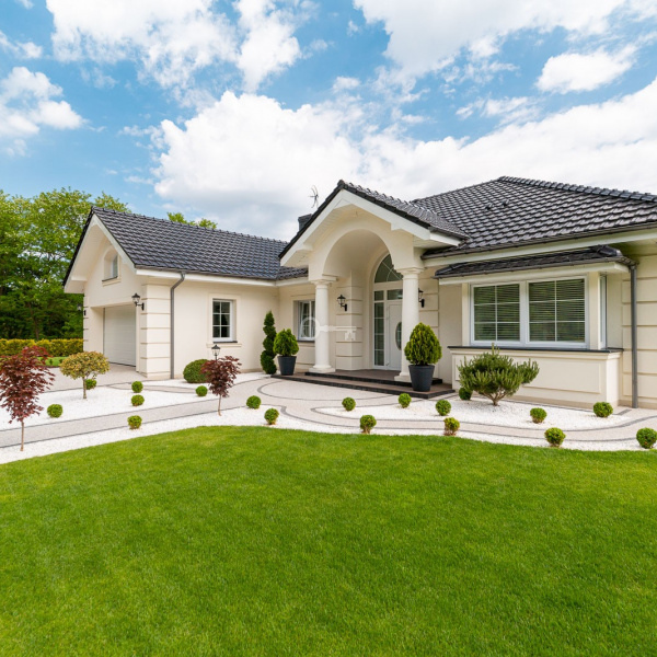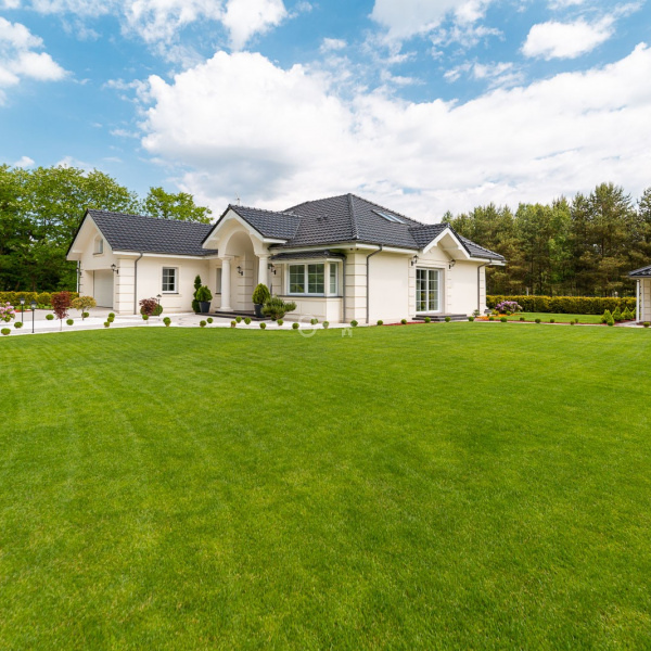 Świetnie utrzymany i zagospodarowany. Ponad 300 krzewów i roślin, automatyczny system nawadniania w 6 niezależnych strefach, pod całym trawnikiem rozłożona siatka na krety.