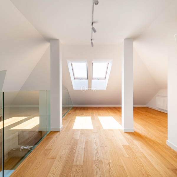 Na piętrze znajdują się dwie duże niezagospodarowane przestrzenie które można przeznaczyć np na sypialnię, pokój zabaw, siłownię, gabinet.