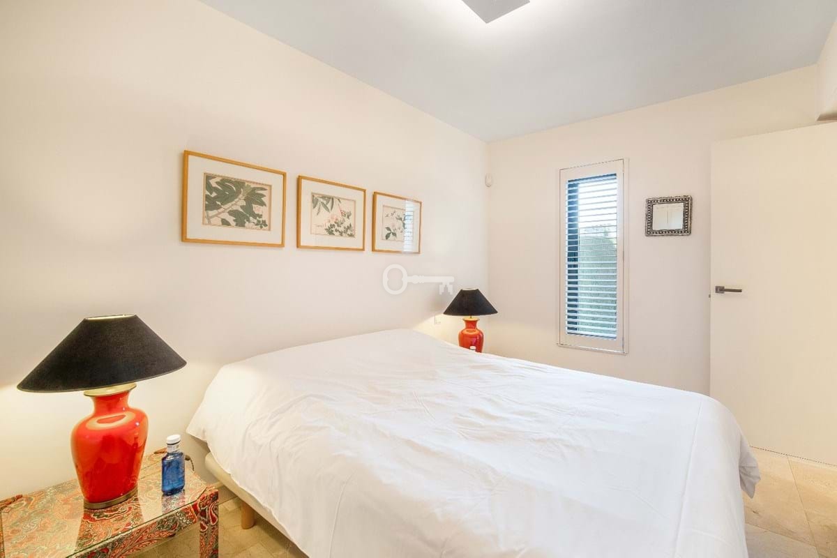 Wewnątrz willa łączy nowoczesny komfort z ponadczasową elegancją. Układ jest rozmieszczony na jednym piętrze, co ułatwia życie. Obejmuje przestronny salon-jadalnię z kominkiem i bezpośrednim dostępem do ogrodu, w pełni wyposażoną nowoczesną kuchnię z wyjściem na zewnątrz oraz trzy jasne sypialnie z dużą ilością wbudowanych szaf, z których jedna jest obecnie używana jako domowe biuro. Każda sypialnia cieszy się naturalnym światłem, a łazienki wykończone są wysokiej jakości marmurem.
