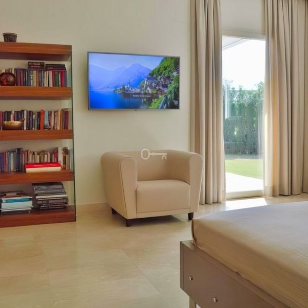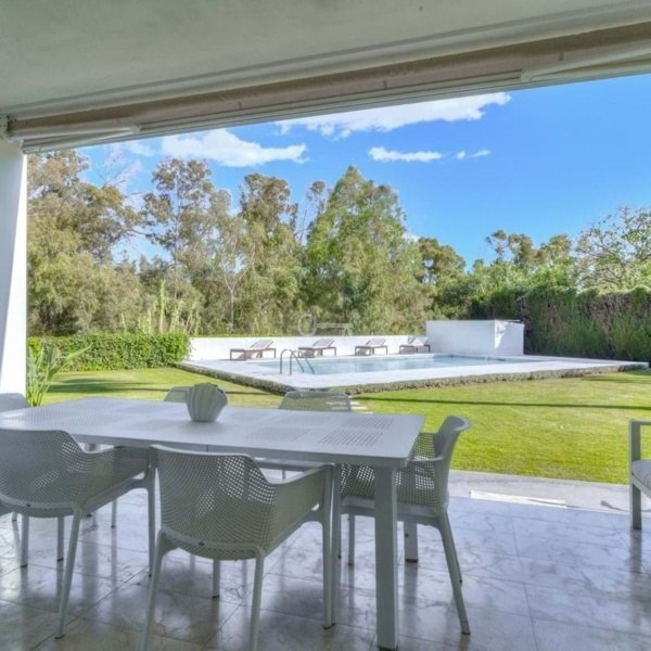* Na dużej działce, bezpośrednio graniczącej z rzeką Guadalmina i tytułowym polem golfowym, co dodatkowo zwiększa prywatność i spokój.