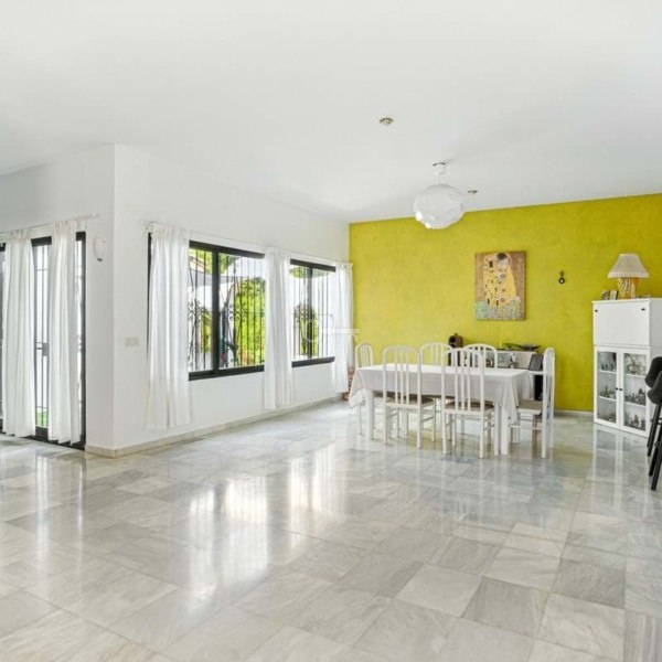 Położona w cichej i pożądanej dzielnicy mieszkalnej Hacienda Las Chapas, ta urocza willa od strony południowo-wschodniej znajduje się na hojnej działce o powierzchni 1,756 m² i oferuje fantastyczną okazję do renowacji. Niezależnie od tego, czy chcesz stworzyć wymarzony dom rodzinny, czy cenną nieruchomość inwestycyjną, ten jednopoziomowy bungalow ma ogromny potencjał. Obecny układ obejmuje cztery proporcjonalne sypialnie, przestronny salon, oddzielną jadalnię, kuchnię, rodzinną łazienkę i pomieszczenie gospodarcze/pralnię. Duże okna w całym domu wypełniają wnętrze naturalnym światłem i tworzą płynne połączenie z otaczającymi ogrodami. Nieruchomość położona jest w spokojnej i bezpiecznej okolicy, w niewielkiej odległości od plaży, pól golfowych, międzynarodowych szkół i wszystkich lokalnych udogodnień. Jest to rzadka okazja do nabycia nieruchomości z solidnymi fundamentami, dużym terenem i potencjałem, aby stać się czymś naprawdę wyjątkowym w doskonałej lokalizacji na Costa del Sol.