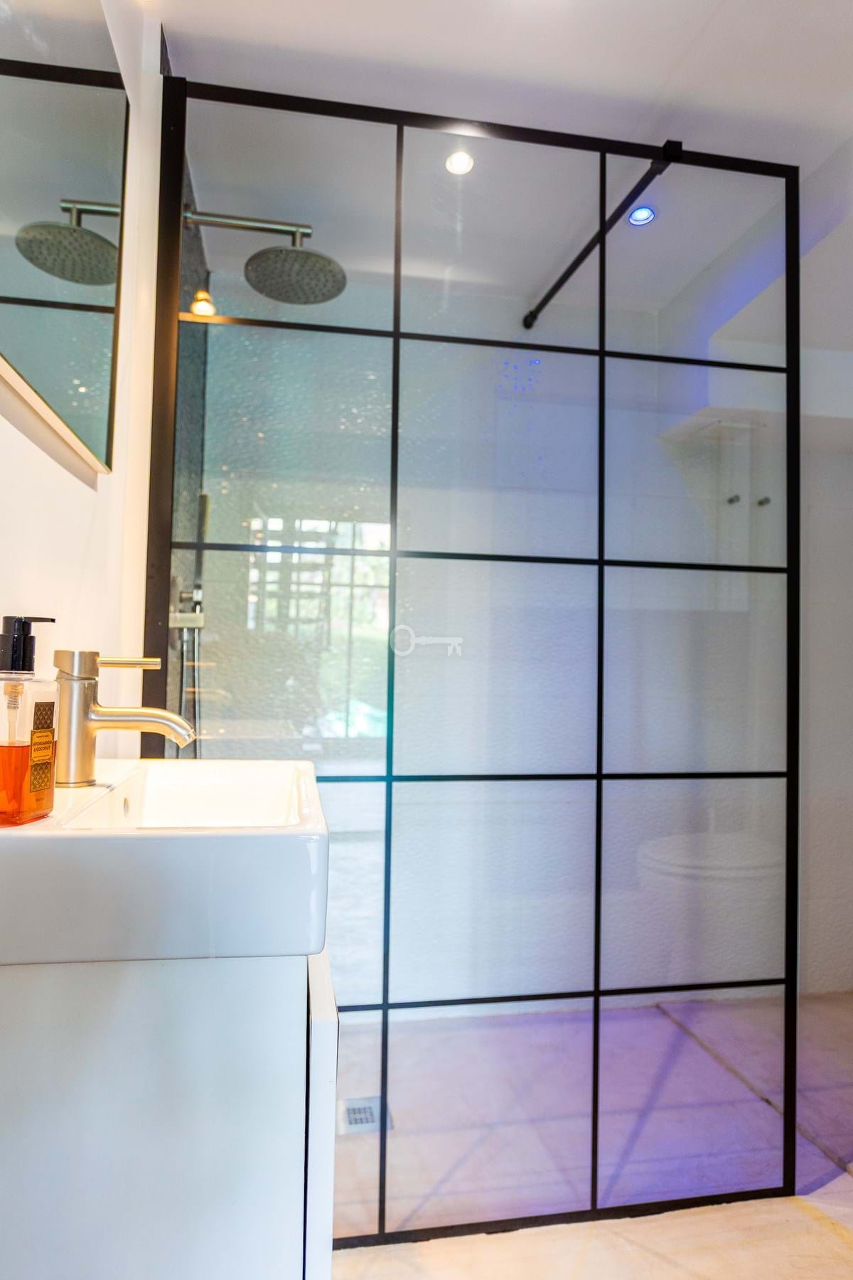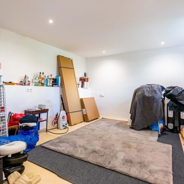 Uderzające szklane schody prowadzą na niższy poziom, gdzie znajduje się kolejna duża dwuosobowa sypialnia, nowoczesna łazienka i wszechstronny dodatkowy pokój idealny jako sypialnia lub dedykowana przestrzeń biurowa.