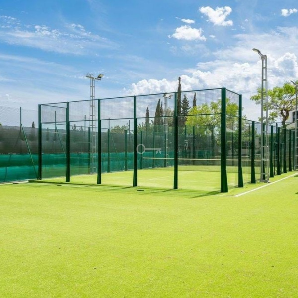 Na zewnątrz ogród wychodzi na południe i ma wiele ścieżek do spacerów, duży plac zabaw, miejsca do ćwiczeń, a nawet boisko do padla.