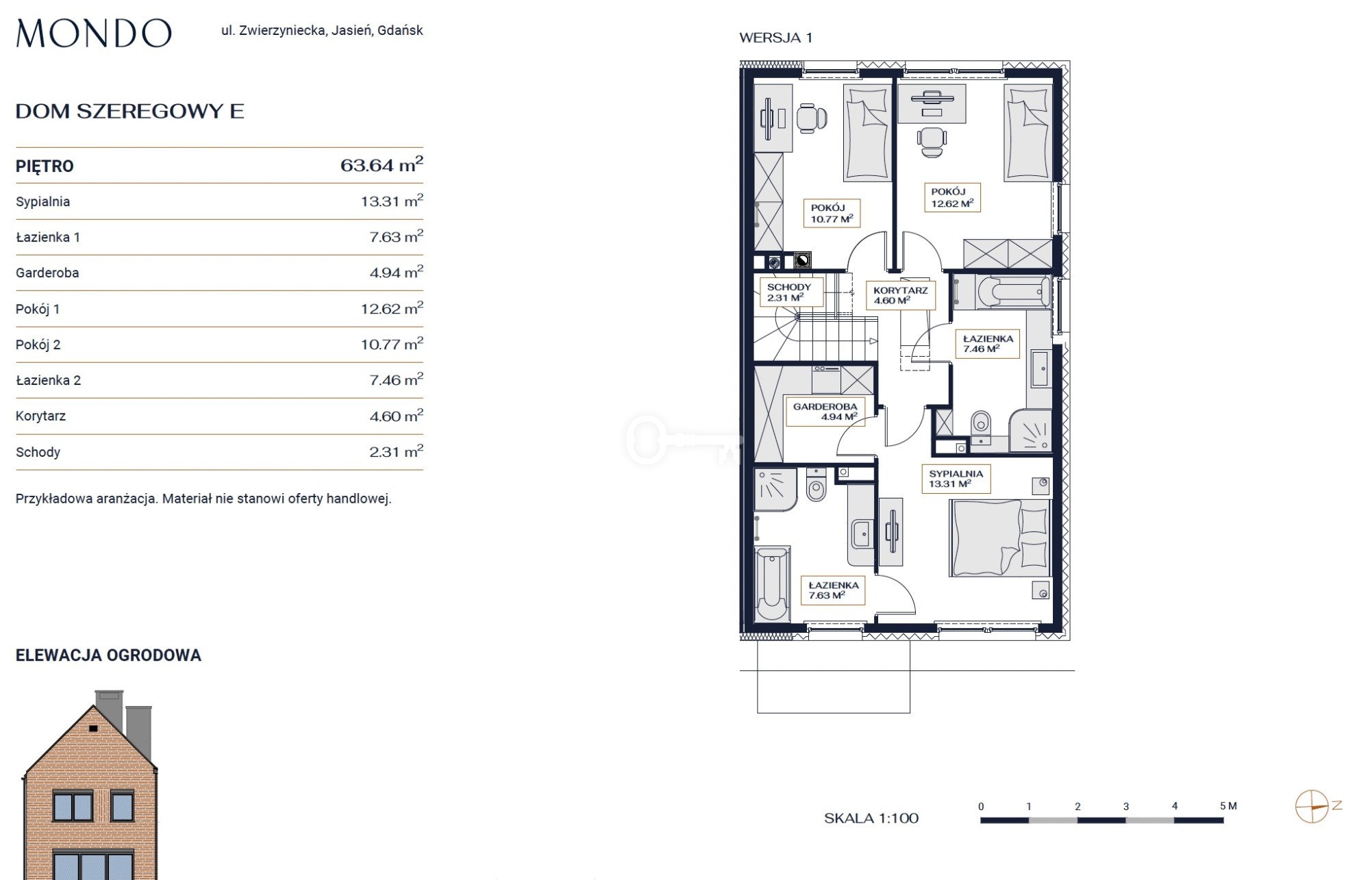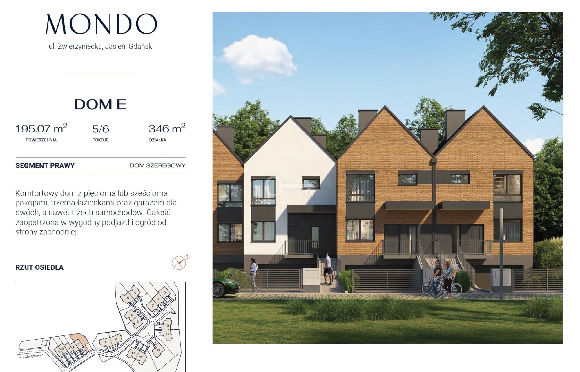Komfortowy dom typu segment o powierzchni 195 m2 usytuowany na działce 346 m2, z sześcioma pokojami, trzema łazienkami, spiżarnią oraz garażem dla trzech samochodów. Całość zaopatrzona w przestronny ogród o ekspozycji zachodniej.