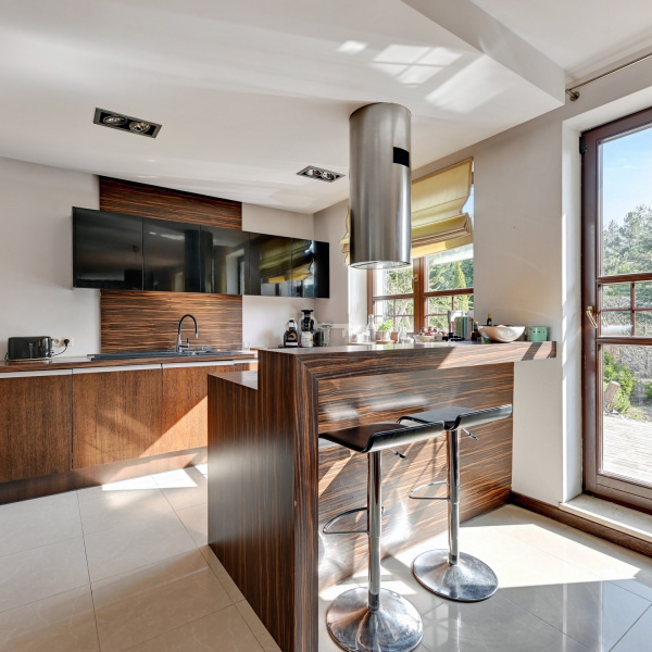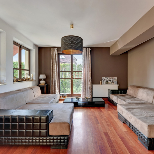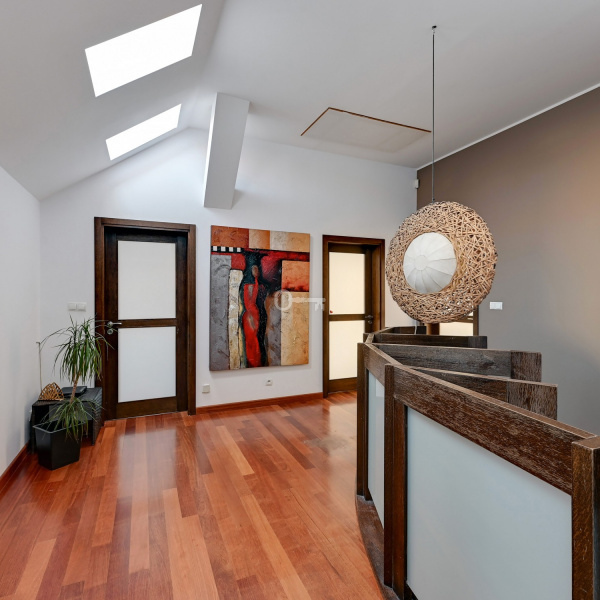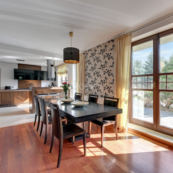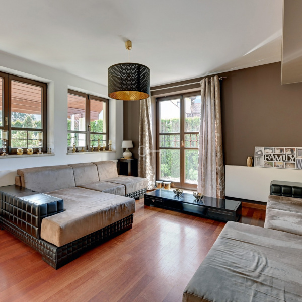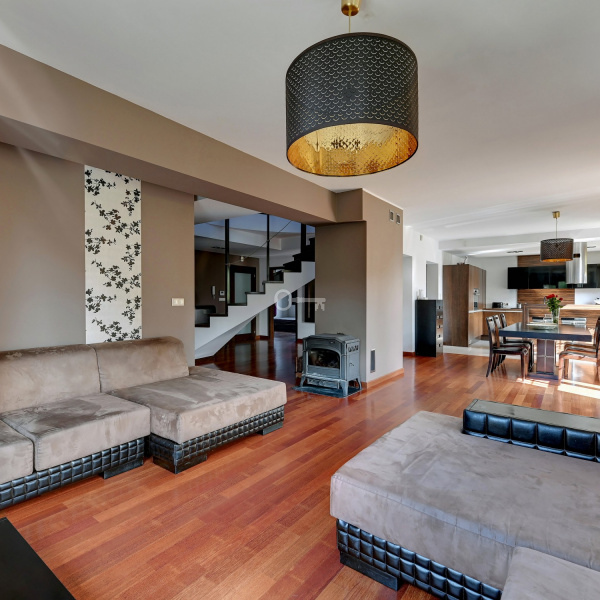 Dodatkowym atutem jest przestrzeń do przechowywania, liczne zabudowy wykonane na zamówienie. Całość dopełnia pięknie zaprojektowany ogród w stylu japońskim, z automatycznym systemem podlewania oraz garaż dwustanowiskowy o pow. 35m2 wraz z antresolą.