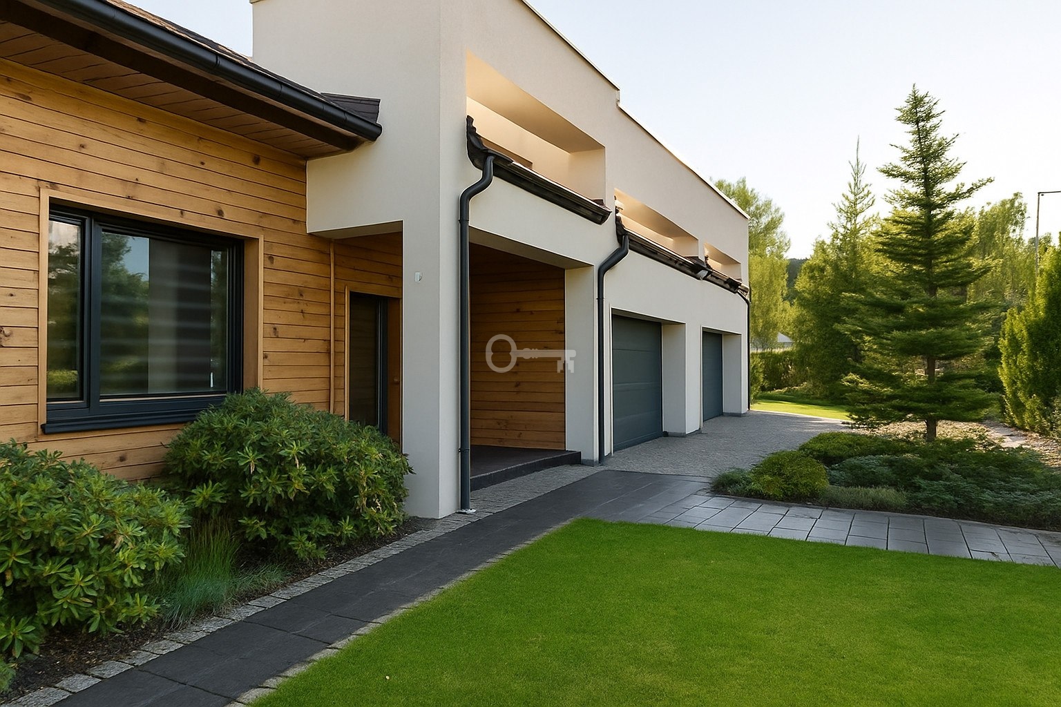 Garaż na 3 auta. Podjazd wyłożony kostką granitową z miejscem na 2 dodatkowe auta