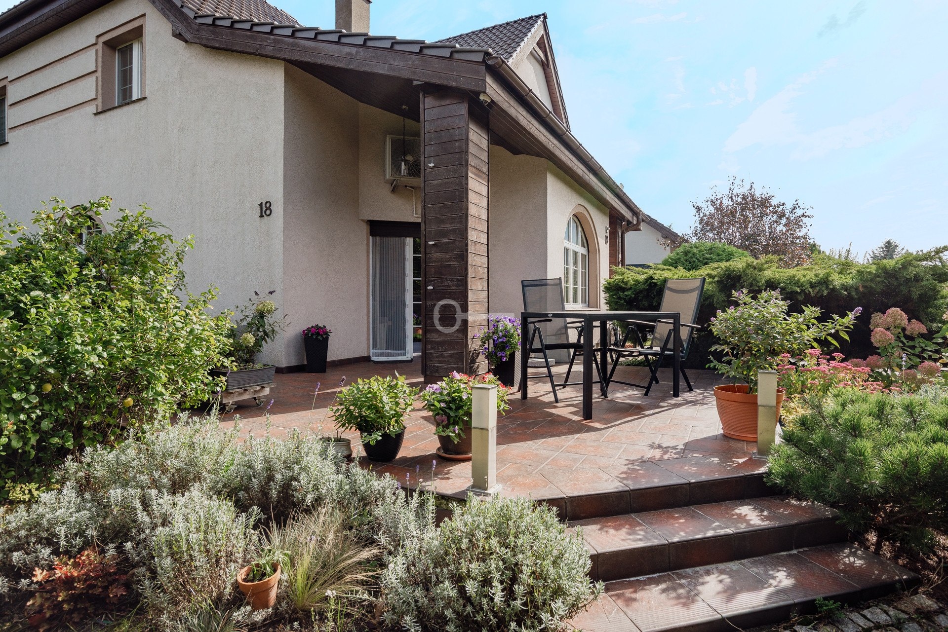 * Zadbany ogród z licznymi nasadzeniami, wybrukowanym podjazdem i pełnym ogrodzeniem zapewnia prywatność i spokój.