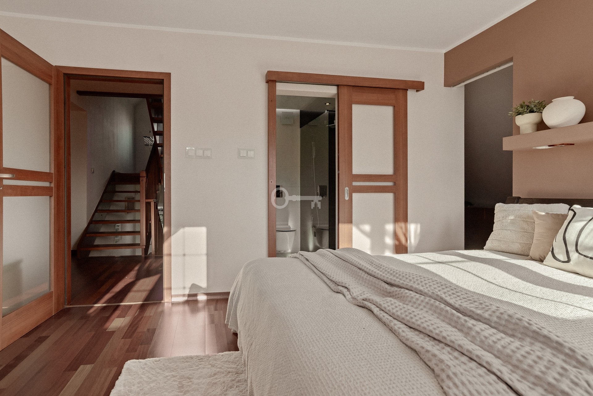 * Sypialnia master z prywatną łazienką (prysznic) i garderobą,