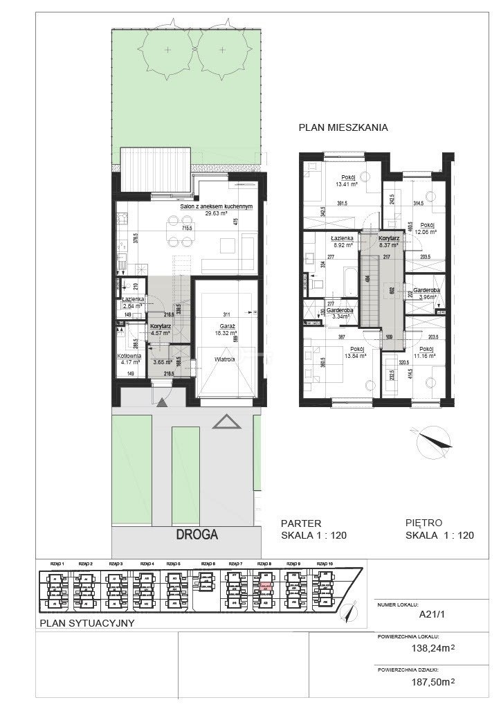 * Zamknięte osiedle z wewnętrzną drogą i pełną infrastrukturą.