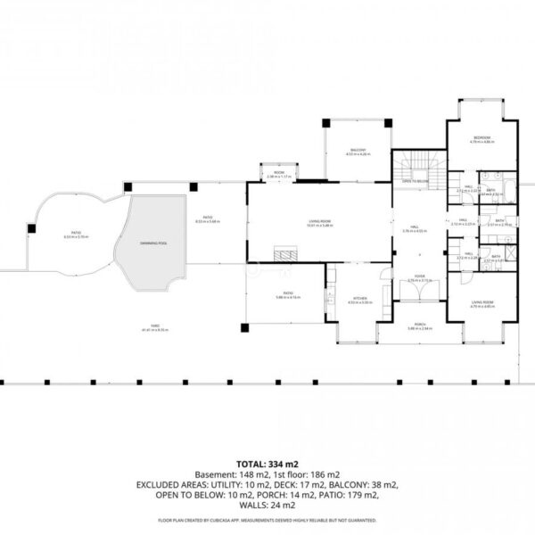 One of them leads to the garden and a lovely pool area. To the right from the hallway, you have two good sized bedrooms and a laundry area.