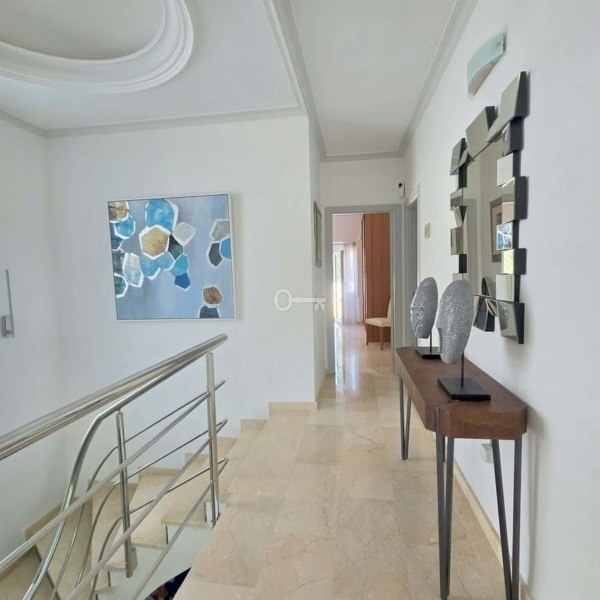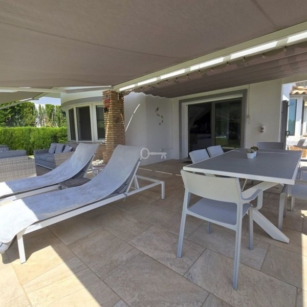 Willa posiada jasną i przestronną część dzienną i jadalną, ozdobioną nowoczesnym kominkiem gazowym i otwartą na uroczy taras z pergolą i baldachimem, idealny do spożywania posiłków na świeżym powietrzu, podziwiając widoki na piękny ogród i prywatny basen.
