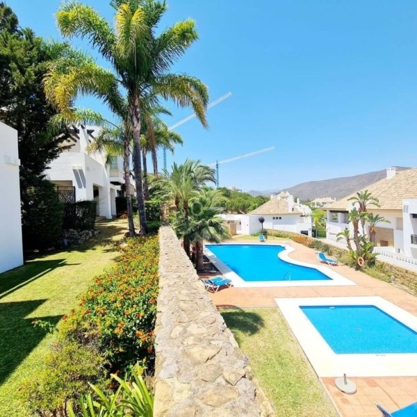 Piękna i przestronna kamienica na sprzedaż w Monte Alto. Urbanizacja znajduje się w luksusowej części ośrodka golfowego La Cala, obok klubu, kortu tenisowego, spa i niecałe 10 minut jazdy od pięknych plaż La Cala de Mijas. Nieruchomość znajduje się na bezpiecznym zamkniętym osiedlu z 2 basenami i pięknymi ogrodami. Na parterze znajduje się jasny i przestronny salon z kominkiem, w pełni wyposażona kuchnia, toaleta dla gości, taras z ogrodem i pięknymi widokami na część wspólną, basen i ogrody, a także góry i część wybrzeża. Na drugim piętrze znajdują się 2 sypialnie i łazienka z wysokiej jakości wykończeniami i wbudowanymi szafami, a także wspólny taras oraz trzecia sypialnia z własną łazienką z jacuzzi i garderobą, a także kolejny mały taras. Prywatny garaż na dwa samochody w piwnicy.