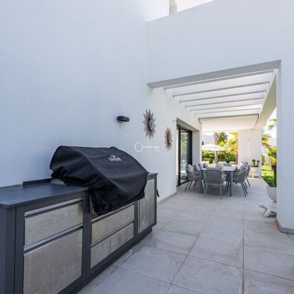 Wyjdź na zewnątrz, aby cieszyć się własną kuchnią na świeżym powietrzu i przestrzenią rozrywkową, idealną do spożywania posiłków na świeżym powietrzu i przyjmowania gości przez cały rok w słońcu Costa del Sol. Każdy szczegół tej willi odzwierciedla najwyższe standardy rzemiosła i smaku, dzięki czemu jest gotowa do zamieszkania od pierwszego dnia.