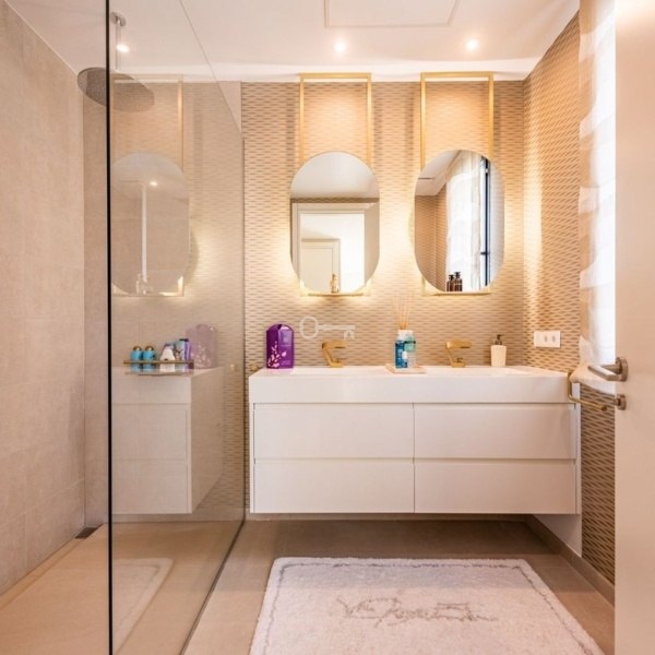 Ta oszałamiająca nieruchomość obejmuje 5 łazienek z łazienkami oraz 2 stylowe toalety dla gości dla dodatkowej wygody. Wewnątrz znajdują się przestronne przestrzenie mieszkalne, w tym salon, elegancki prywatny bar, w pełni wyposażona siłownia i funkcjonalne pralnie, wszystkie starannie wyselekcjonowane z najwyższej klasy meblami i designerskim wystrojem.