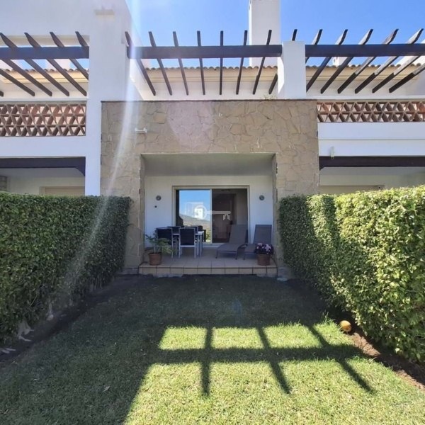Ta elegancka kamienica z 2 sypialniami i 2 łazienkami oferuje idealne połączenie komfortu, jakości i przyszłego potencjału. Położona na terenie strzeżonego osiedla ze wspólnym basenem, nieruchomość oferuje spektakularne widoki na pole golfowe, góry i morze, tworząc prawdziwie uprzywilejowane otoczenie.