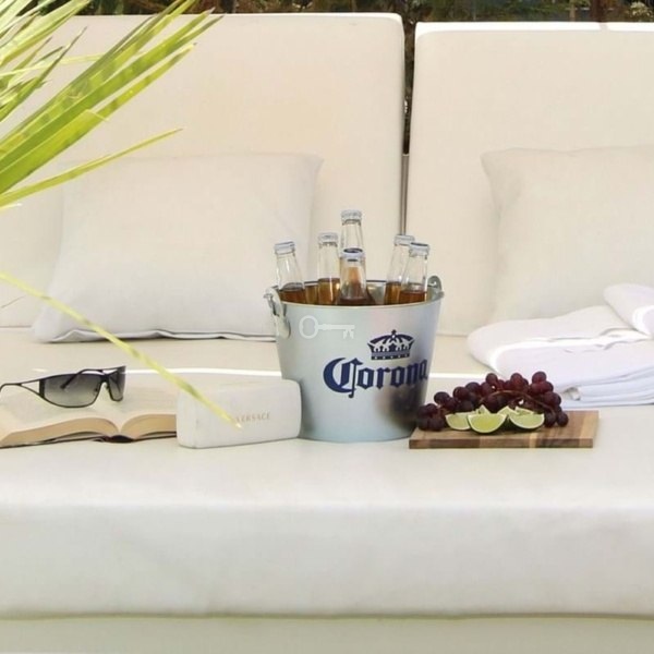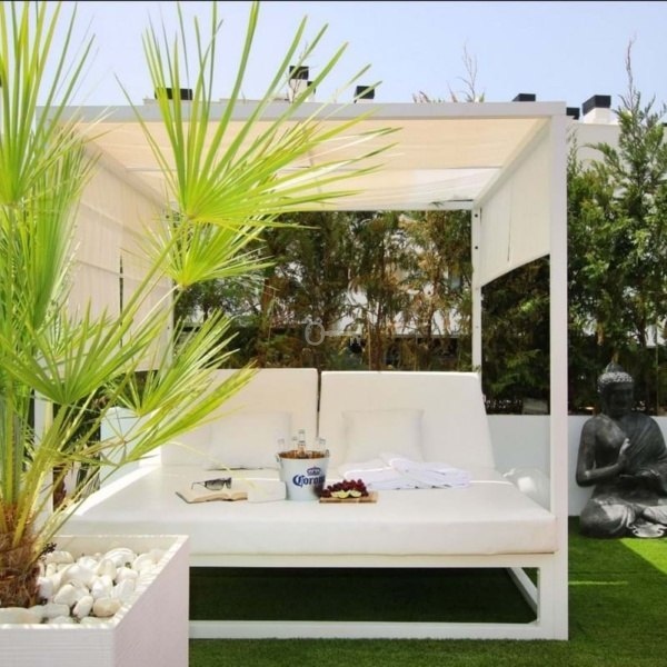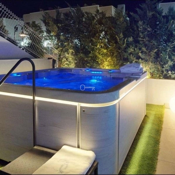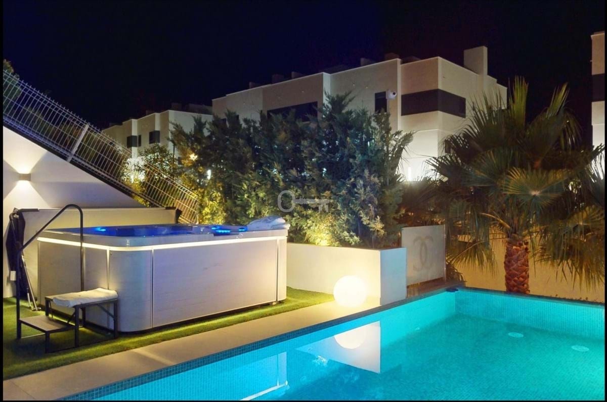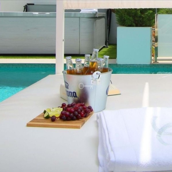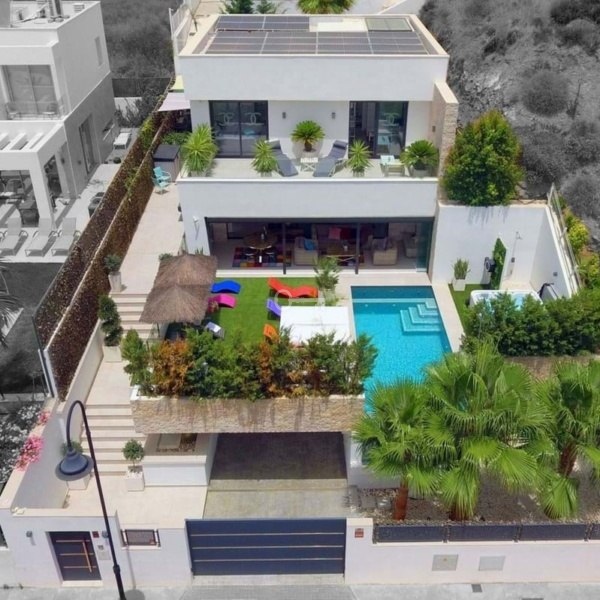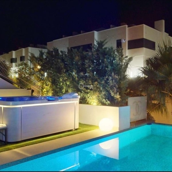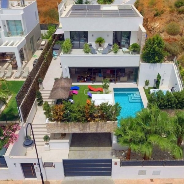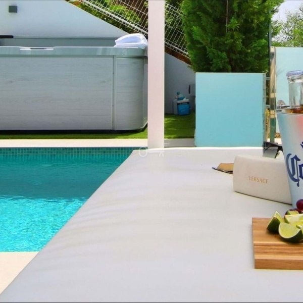 Na zewnątrz znajduje się łatwy w utrzymaniu ogród, miejsce do grillowania, jacuzzi i sauna, oferujące wyjątkowy śródziemnomorski styl życia. Posiada również apartament dla gości, piwnicę, pralnię, pomieszczenie gospodarcze i garaż na dwa samochody.