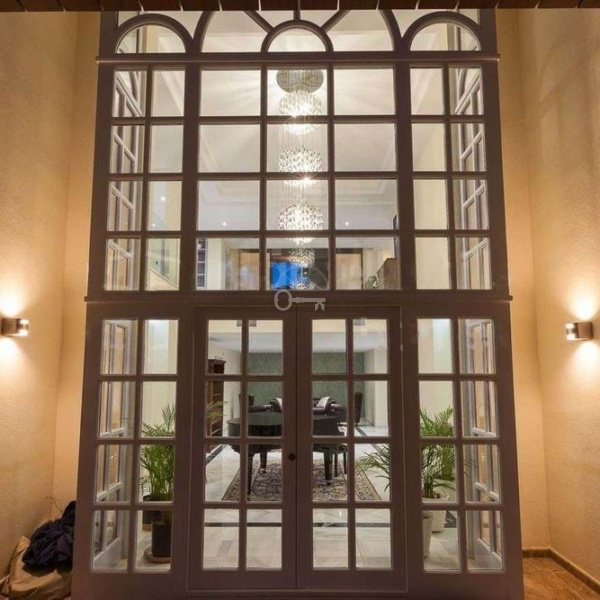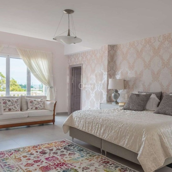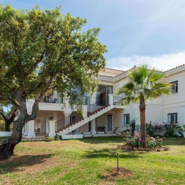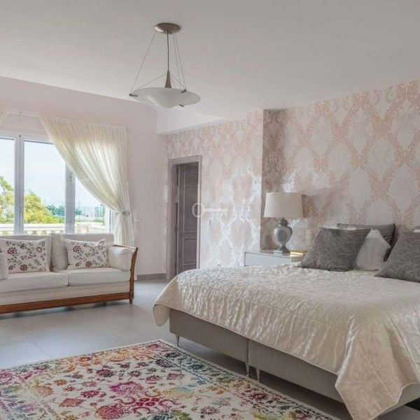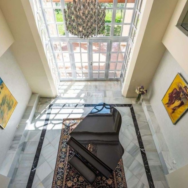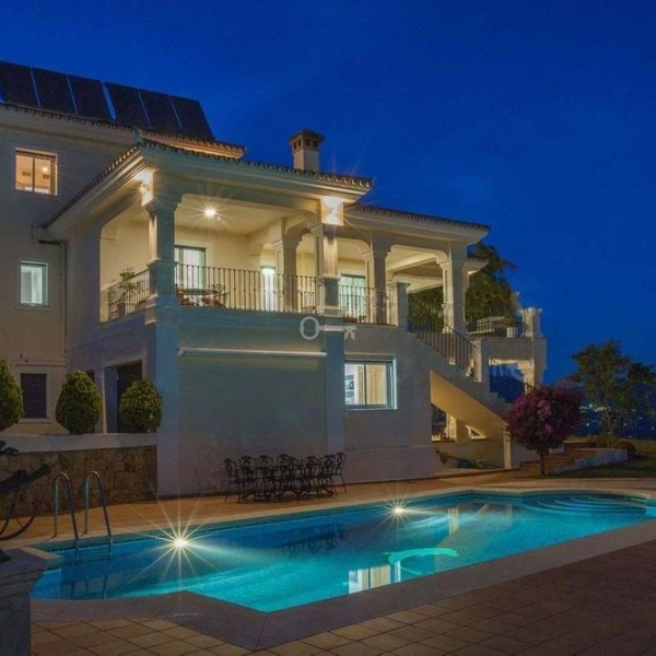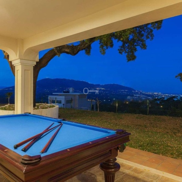 Ta okazała willa zbudowana na działce o powierzchni 3200 m2 ma duże i eleganckie wnętrza, salon / jadalnię z kominkiem dającym bezpośredni dostęp do zadaszonych i odkrytych tarasów, ogrodu i basenu, w pełni wyposażoną kuchnię, toaletę dla gości.