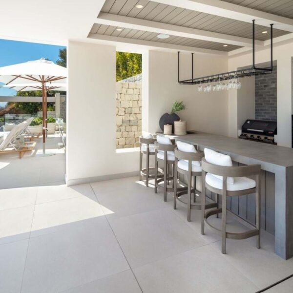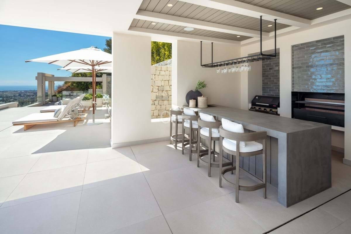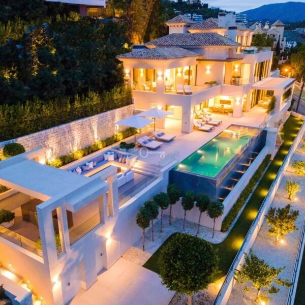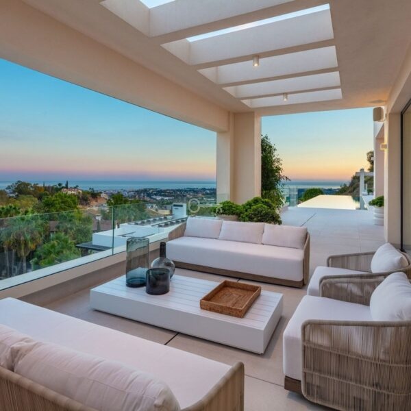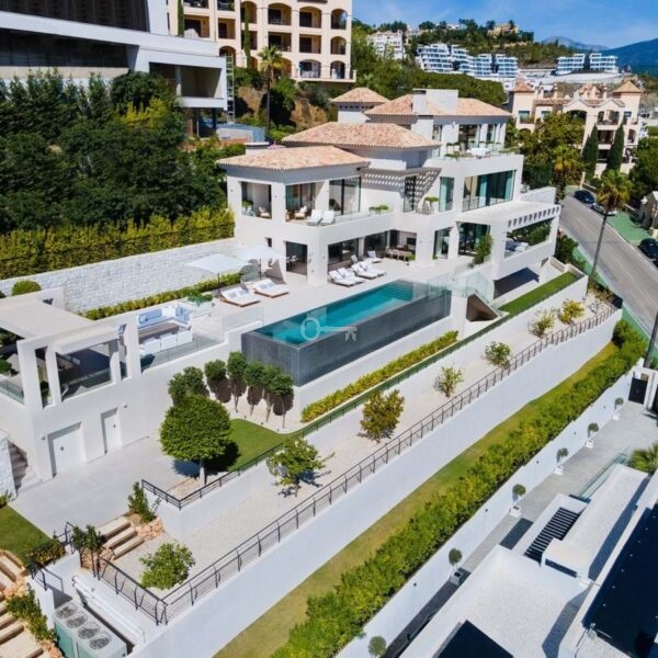 Nowoczesny dom na zamówienie, położony na jednej z ostatnich dostępnych działek w El Herrojo, w ośrodku La Quinta Golf & Country Club, oferujący maksymalne zakwaterowanie w doskonałej lokalizacji. Willa została zbudowana i zaprojektowana zgodnie z najwyższymi specyfikacjami jakościowymi, zapewniając życie w stylu kurortu z niesamowitymi widokami na Morze Śródziemne. Villa Leo 2 to prawdziwie nowoczesny dom o majestatycznych proporcjach i nieskazitelnych wnętrzach. Willa oferuje wyjątkowe luksusowe funkcje, w tym: wysokie sufity, okna sięgające od podłogi do sufitu, rozległe tarasy, basen bez krawędzi, kuchnię na świeżym powietrzu oraz epickie widoki na zachód słońca i morze. Willa wita w imponującym holu wejściowym, prowadzącym do przestronnego i wypełnionego światłem salonu. Willa oferuje układ na otwartym planie, w którym salon, jadalnia i kuchnia są połączone. Z jadalni roztacza się widok na wspaniałe wewnętrzne patio. Każda sypialnia jest wyjątkowa i przytulna, z niezrównanym widokiem na morze i góry. Apartament główny to wygodna i przytulna przestrzeń z dużą sypialnią, elegancką łazienką, imponującą garderobą i zapierającym dech w piersiach słonecznym tarasem. Nieruchomość oferuje najnowocześniejszą przestrzeń w piwnicy z salą telewizyjną, dodatkową kuchnią, w pełni wyposażoną siłownią, sauną, strefą rozrywki i salą kinową. Jest to naprawdę jeden z najbardziej imponujących luksusowych domów dostępnych w La Quinta.