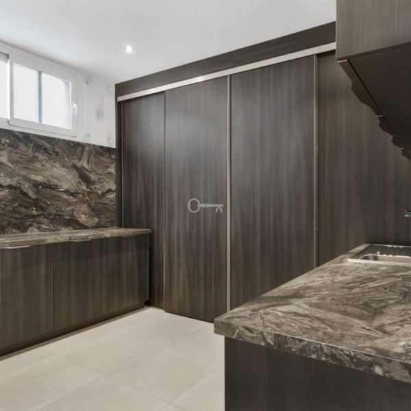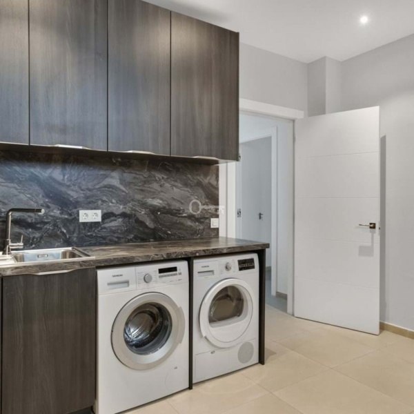Na poziomie -1 znajduje się dodatkowa sypialnia z łazienką, duże pomieszczenie gospodarcze z pralnią, prasowalnią i sprzętem do sprzątania, przestronny pokój, który można zaadaptować na salę telewizyjną, siłownię, biuro lub domowe wellness. Dodatkowo na tym samym poziomie znajduje się garaż na 3-4 samochody, rowery lub motocykle.