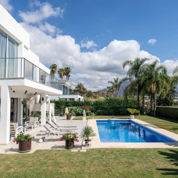 Ta oszałamiająca nowoczesna willa oferuje otwarte widoki na dolinę golfową, górę La Concha i Morze Śródziemne, doskonale usytuowana w cichej i poszukiwanej okolicy La Quinta, zaledwie 3 minuty spacerem od prestiżowego hotelu Westin La Quinta.