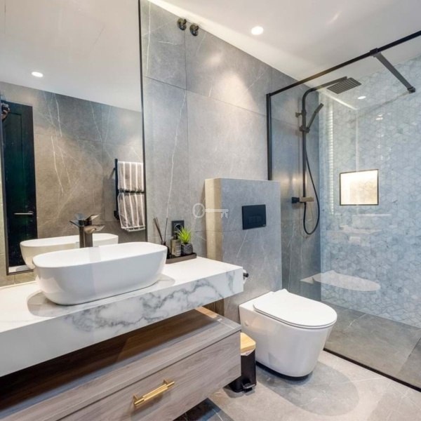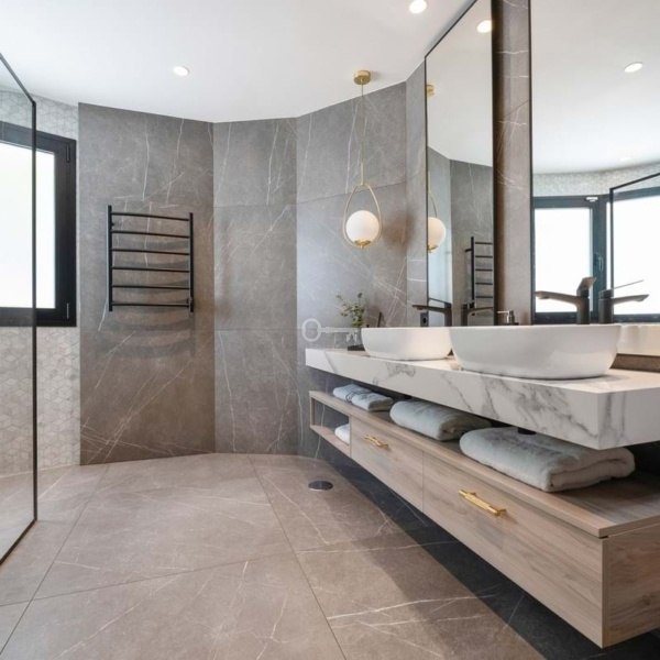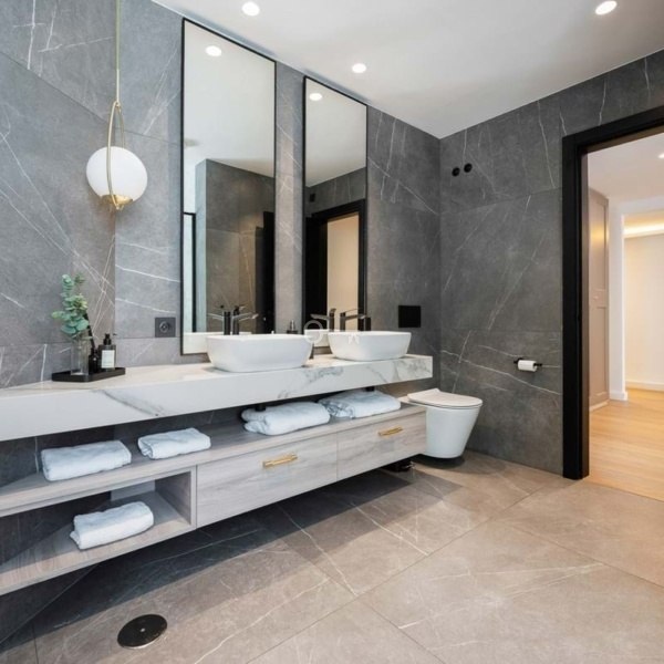 Na najniższym poziomie znajdują się trzy kolejne sypialnie, pralnia i pomieszczenie gospodarcze. Obszar zewnętrzny jest idealny do całorocznej rozrywki dzięki dużemu podgrzewanemu i zadaszonemu basenowi, w pełni wyposażonej kuchni na świeżym powietrzu i siłowni.