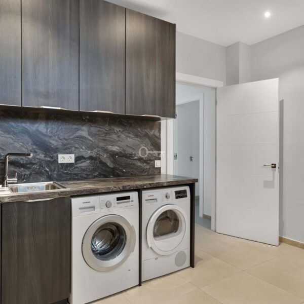 An additional bedroom with bathroom, a large utility area with laundry and storage room, plus a spacious multipurpose room ideal for a home cinema, gym, office, or wellness area.