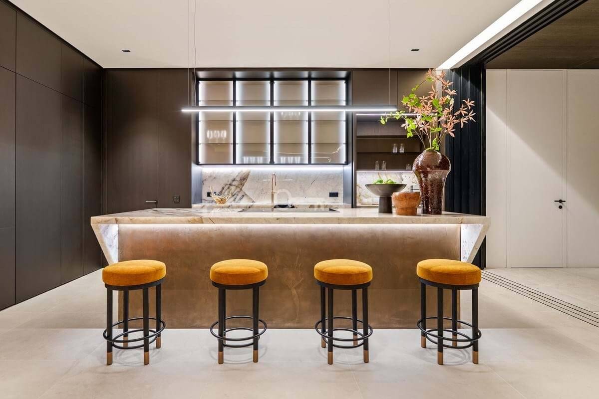 The lower level offers nearly 800 m² of luxurious space, designed to capture natural light and scenery through generous windows. Here youll discover multiple lounges for relaxing or entertaining, a games room, cinema room, fully equipped gym, and an indoor spa with pool and jacuzzi.