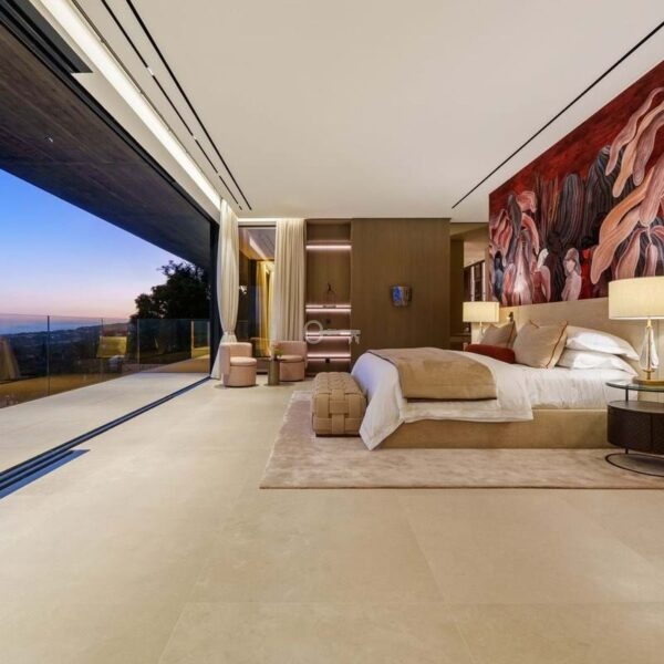 On the upper floor, youll find three additional en-suite bedrooms, including a magnificent master suite of over 70 m². The master suite offers a walk-in dressing room, a luxurious bathroom, and a private terrace with a jacuzzi overlooking the stunning landscape.