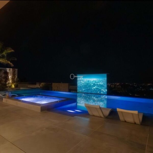 A unique highlight of the villa is the outdoor cinema by the pool, creating an exceptional venue for relaxation under the stars, offering an added touch of luxury to your evenings outdoors.