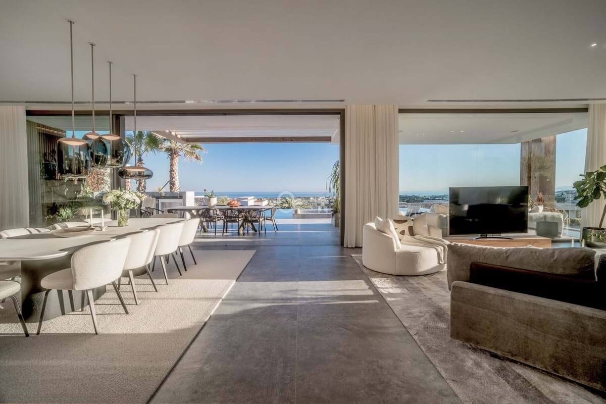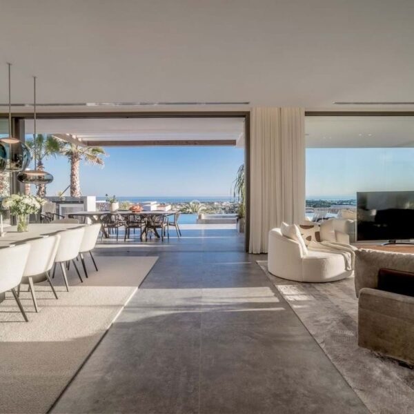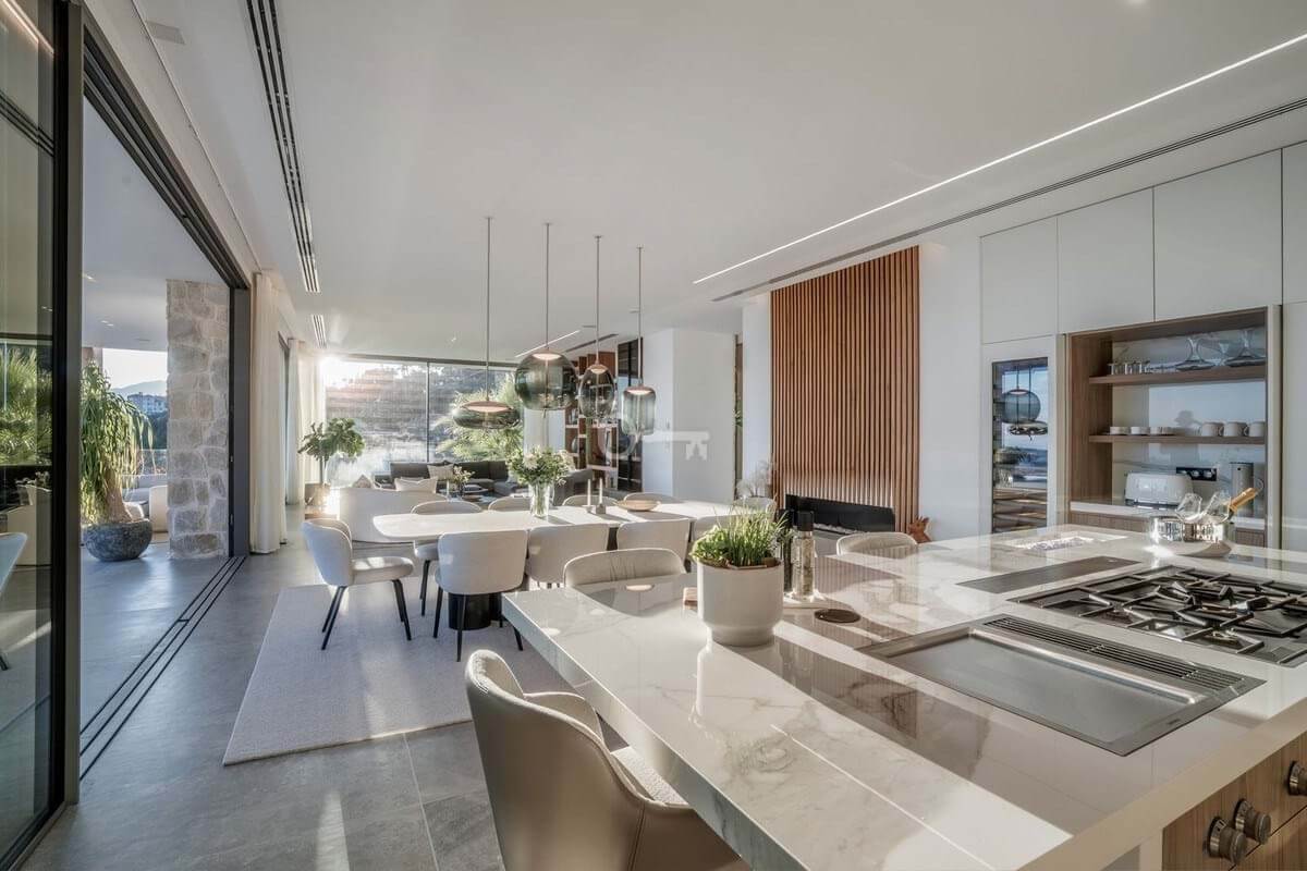 With panoramic views that stretches from the Mediterranean Sea to the African coast. Its contemporary design enhances this experience, with open-plan interiors that blend effortlessly with the natural surroundings. Floor-to-ceiling windows and expansive living areas create a seamless indoor-outdoor flow, filling the space with natural light, fresh air, and uninterrupted views at every turn.
