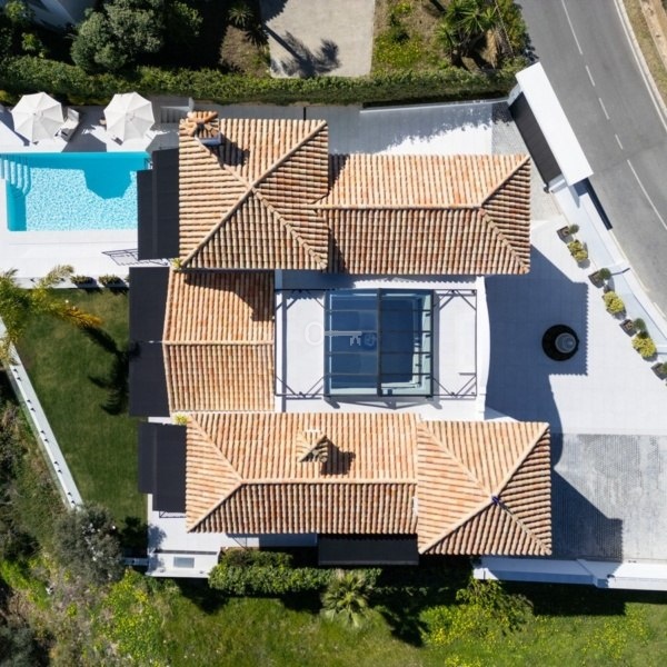 W sercu domu znajduje się patio w stylu andaluzyjskim ze zdalnie sterowanym rozsuwanym szklanym dachem, poprawiającym światło i atmosferę. Dodatkowe funkcje obejmują pełną kontrolę klimatu, dwie bramy wjazdowe, wewnętrzny parking i uroczy dziedziniec z fontanną.