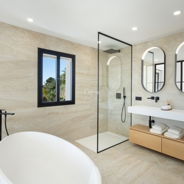 Willa doskonale łączy podłogi z dębu skandynawskiego z wysokiej klasy powierzchniami porcelanowymi, oferując wyrafinowaną, ale ciepłą atmosferę. Na zewnątrz rozległy teren zielony, strefa grillowania i prywatny basen zapewniają idealne warunki do rozrywki i cieszenia się andaluzyjskim klimatem.
