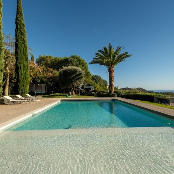 Duży ogród jest ozdobiony dojrzałymi drzewami i dużą ilością trawnika, idealną dla rodziny, aby cieszyć się przestrzenią zewnętrzną. Podgrzewany basen, otoczony drewnianymi tarasami i leżakami, jest dokładnie tym, czego można się spodziewać, z niesamowitym widokiem na morze i góry.