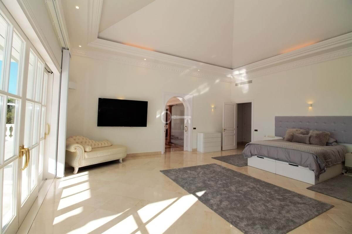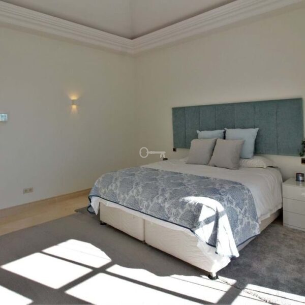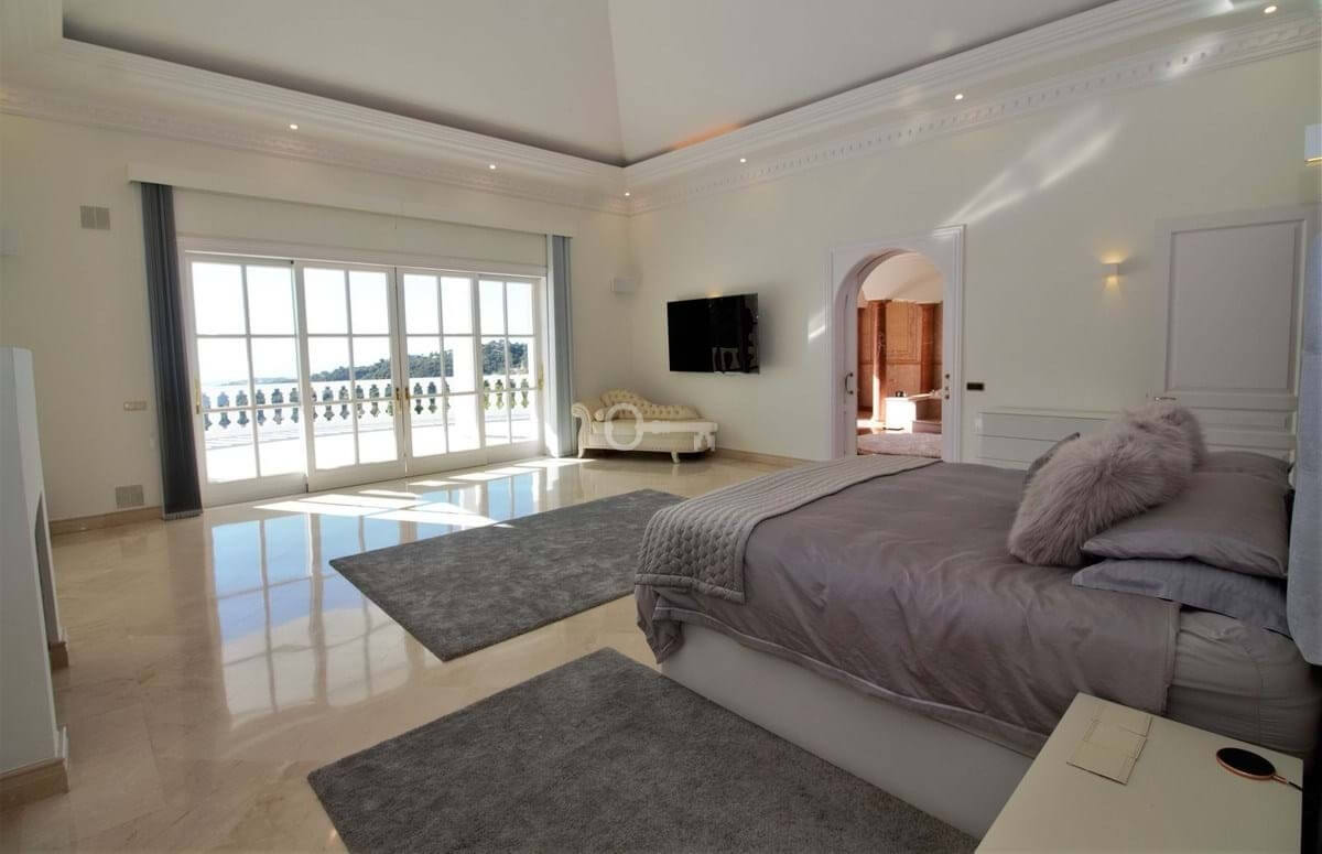 Pierwsze piętro: imponująca główna sypialnia z łazienką i garderobą. Dwie kolejne sypialnie dla gości: Wszystkie trzy pokoje z dostępem do tarasów.