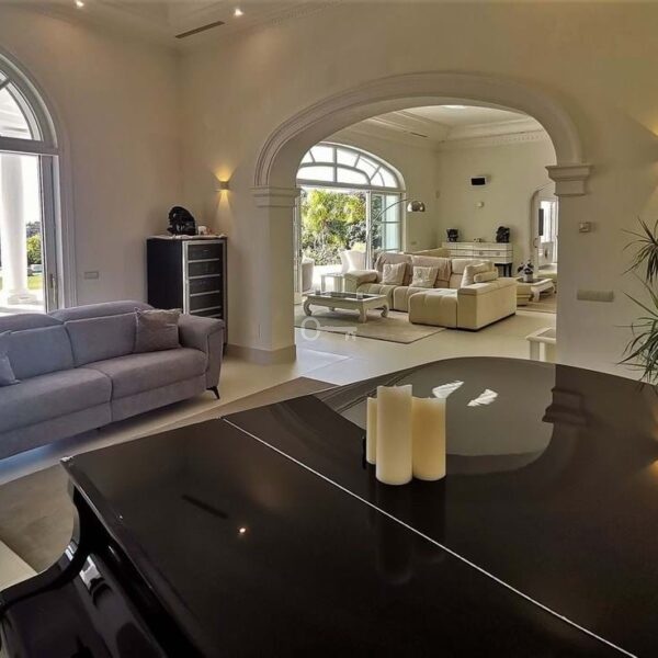 Główne piętro z holem wejściowym, dużą częścią dzienną na otwartym planie z kącikiem telewizyjnym, jadalnią oraz w pełni wyposażoną kuchnią i pralnią. Biuro, dwie sypialnie dla gości z łazienką, toaleta dla gości. Bezpośredni dostęp do zadaszonych i otwartych tarasów oraz prywatnego basenu i ogrodów.