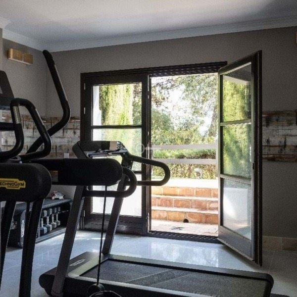 Na poziomie piwnicy znajduje się sypialnia z łazienką, zapewniająca prywatną przestrzeń dla personelu lub gości. W budynku znajduje się najnowocześniejszy sprzęt do ćwiczeń, można też popływać w krytym basenie i zrelaksować się w saunie lub tureckiej łaźni parowej. W budynku znajduje się przestronny wielofunkcyjny pokój biurowy, który można zaadaptować na salę kinową lub rozrywkową. Dostęp do garażu znajduje się w piwnicy i może pomieścić 2-3 samochody.