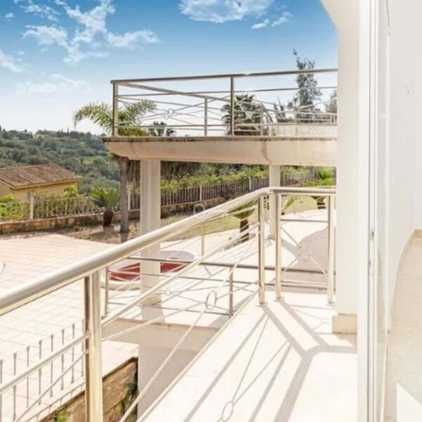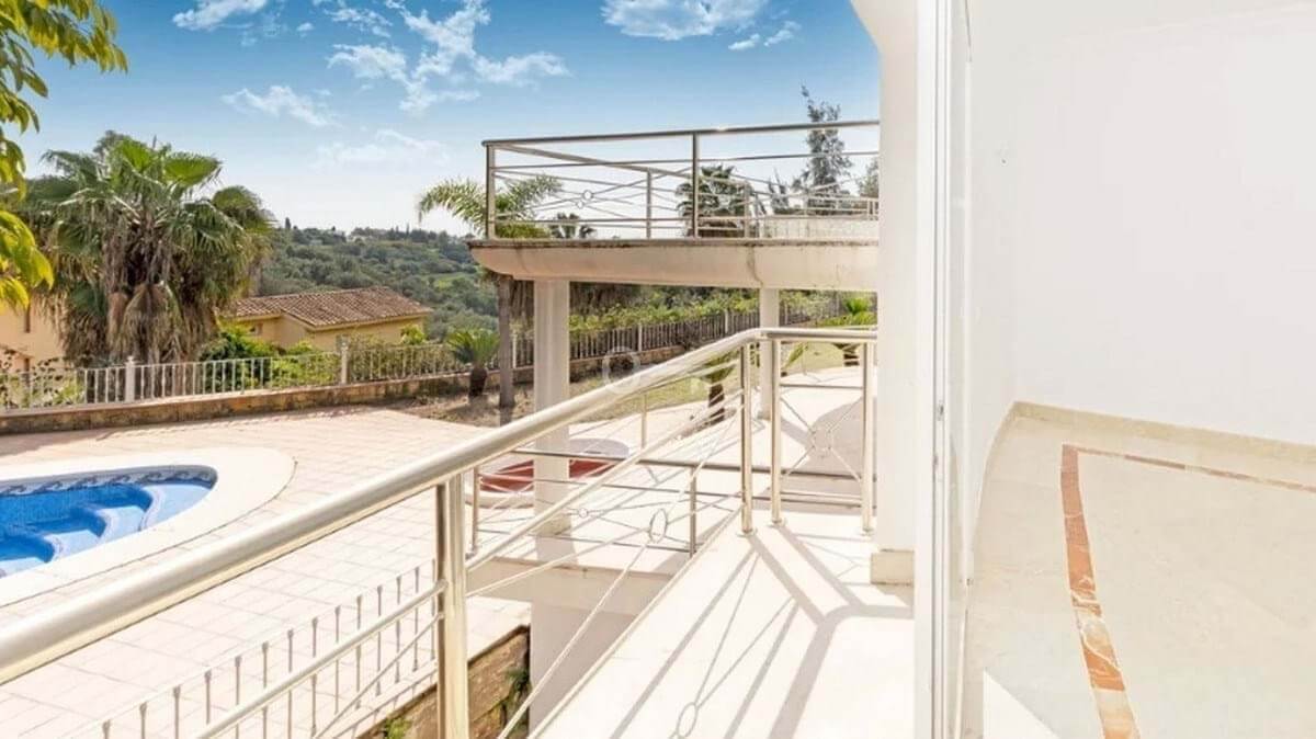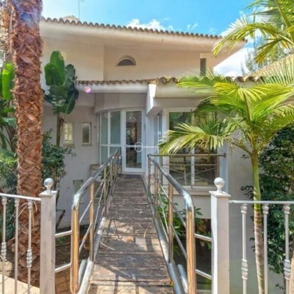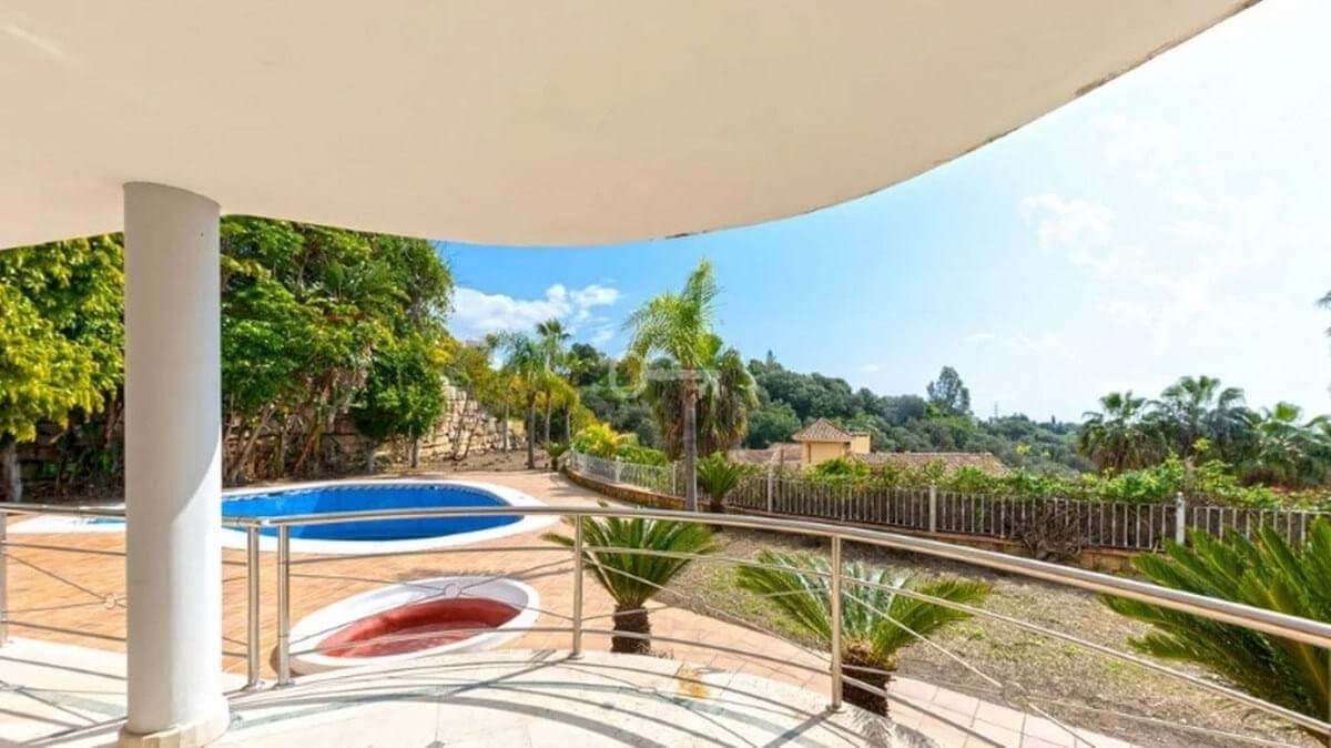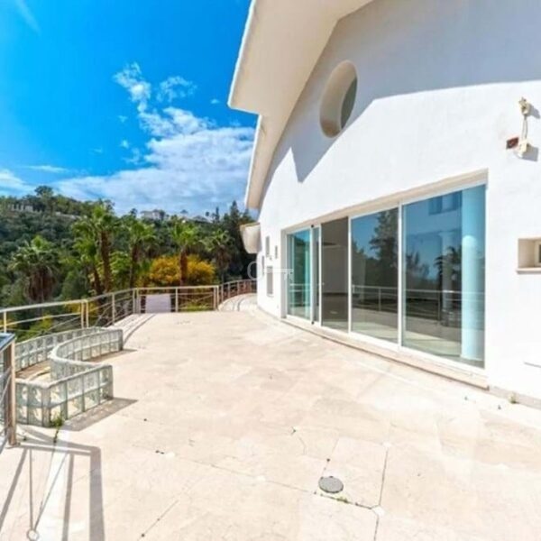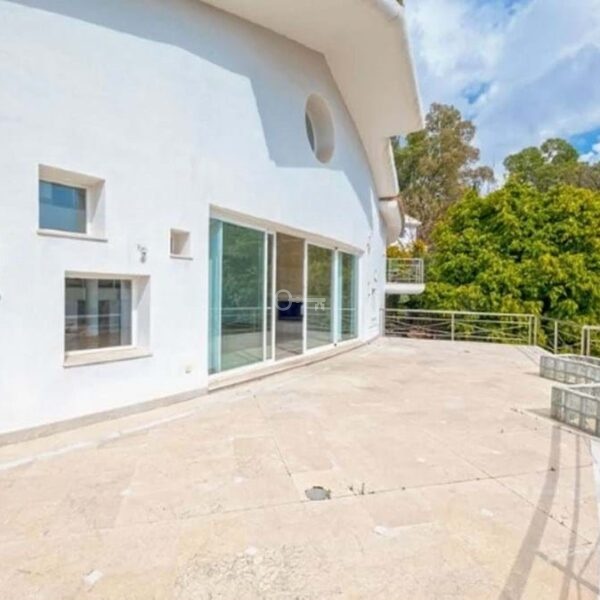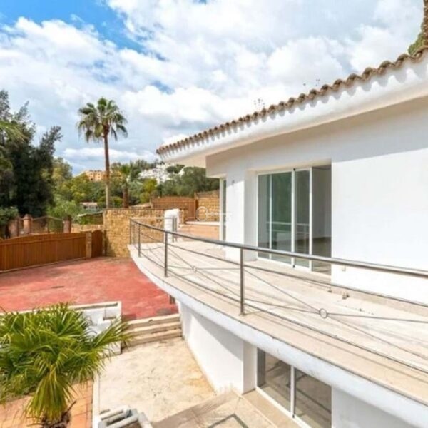 Detached house in the El Almendro Urbanization, Benahavís. It has a surface area of 919 m² distributed over 4 floors. The ground floor comprises a spacious living room, dining room, kitchen, access walkway to the hallway, 2 bedrooms with en-suite bathrooms, and 2 terraces. The upper floor, accessed from the street via the entrance porch, consists of an entrance hall, corridor, 1 bedroom with dressing room, 1 bathroom, and a terrace. The semi-basement level features a spacious garage with room for several vehicles, a games room, and two bedrooms with en-suite bathrooms. The basement level includes a bar area, dressing room, games room, and bathroom. The property sits on a 3,868 m² plot, which includes an entrance porch, parking area, and a large private garden with a swimming pool and jacuzzi, all with sea views. It comes equipped with built-in wardrobes, a fitted kitchen, a fireplace, and pre-installation for air conditioning. Located in a quiet residential area surrounded by several golf courses.