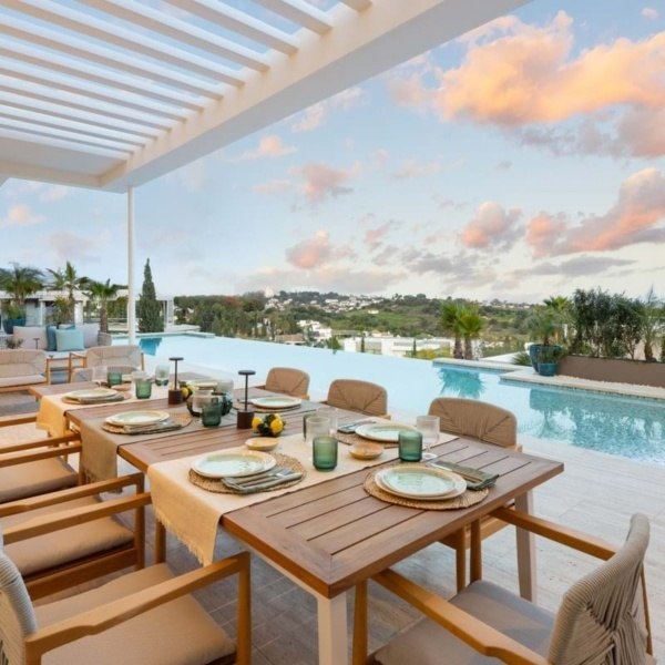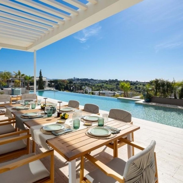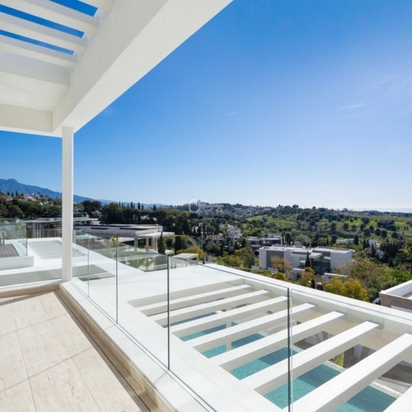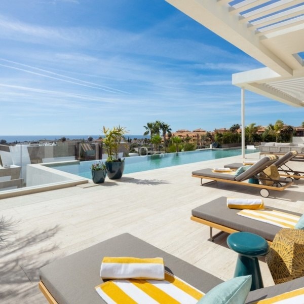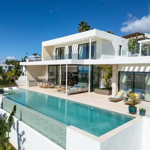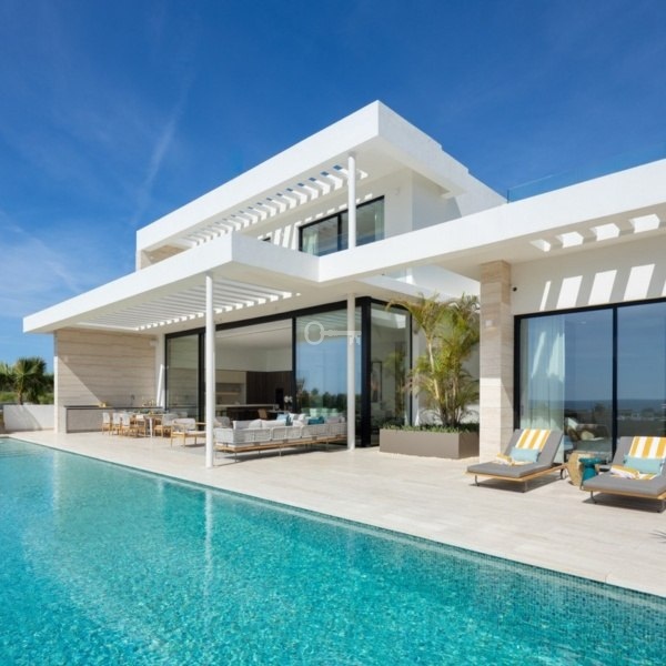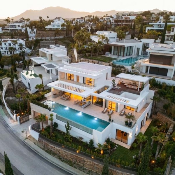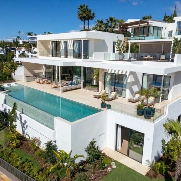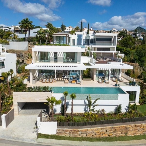 Przedstawiamy zupełnie nową nowoczesną willę położoną w ekskluzywnej zamkniętej społeczności Los Flamingos w Benahavís. Ten położony na wzniesieniu dom oferuje panoramiczne widoki i jest częścią limitowanej kolekcji czterech luksusowych nieruchomości. Dzięki eleganckiemu geometrycznemu wzornictwu i rozległym tarasom – częściowo zadaszonym dla całorocznej przyjemności – ta willa została zbudowana z myślą o stylowym życiu na świeżym powietrzu. Uderzający basen bez krawędzi zwiększa atrakcyjność domu, idealny do rozrywki lub relaksu pod słońcem.