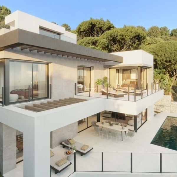 Koncepcja architektoniczna, wprowadzona w życie przez szanowany zespół Rodolfo Jacobsona i Gonzáleza, podkreśla czyste linie, duże objętości i ponadczasową elegancję. Wykorzystanie najwyższej jakości materiałów, takich jak drewno, kamień, mikrocement i porcelana, przyczynia się do stworzenia atmosfery trwałej jakości i estetycznego ciepła. Wnętrze otwiera się na rozległe tarasy zewnętrzne na każdym piętrze, oferując panoramiczne widoki zarówno na Morze Śródziemne, jak i zielone góry. Te wzniosłe widoki można podziwiać od rana do zmierzchu, tworząc dynamiczne tło dla codziennego życia.