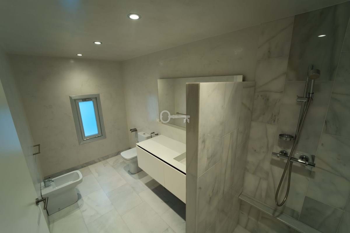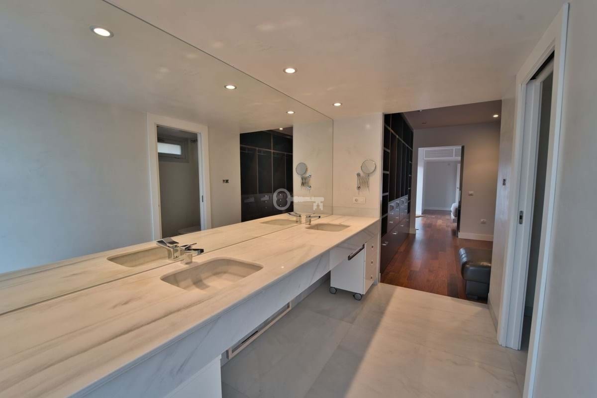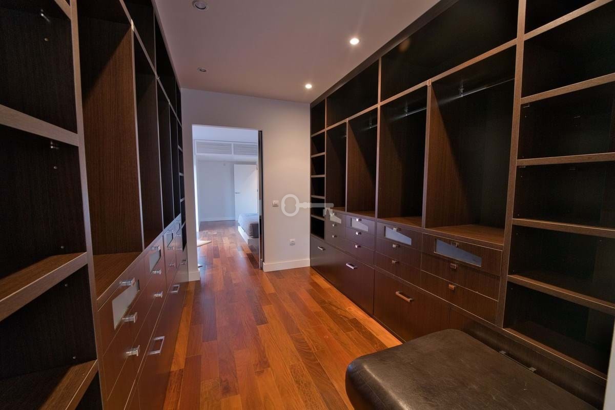 Poziom sypialny: Apartament główny z garderobą, marmurową łazienką i prywatnym tarasem z jacuzzi. Dwie kolejne sypialnie z łazienkami i prywatnymi balkonami.