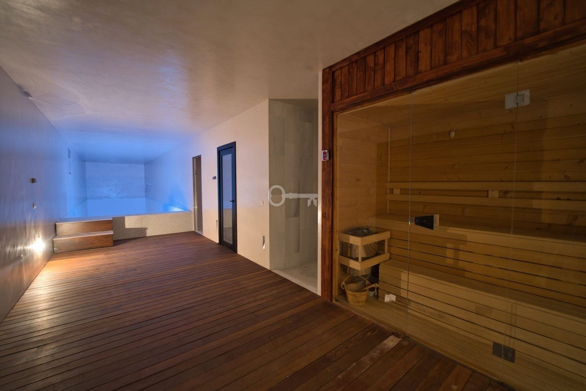 Pierwszy poziom: Wewnętrzne spa z drewnianymi i marmurowymi wykończeniami, prywatna siłownia, sauna, salon rodzinny i bezpośredni dostęp do odkrytego basenu i ogrodu.