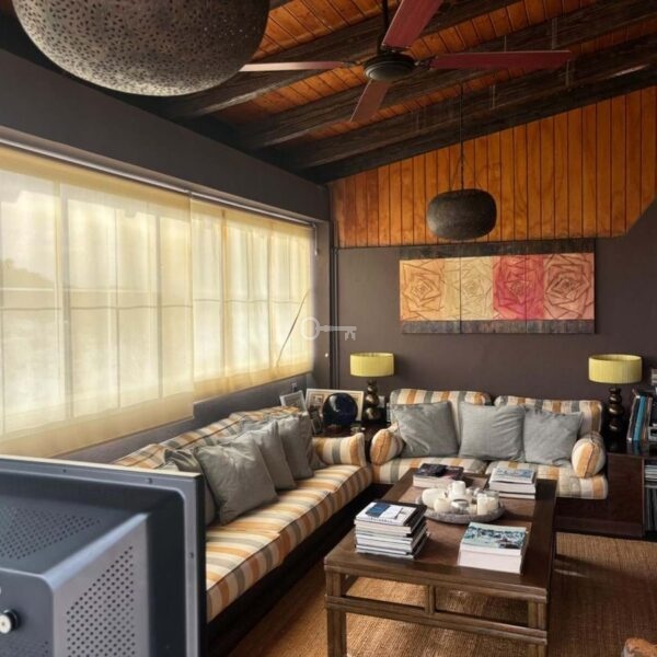 The entire floor has direct access to a splendid, generously sized terrace covered with a wooden pergola and two awnings. It features a charming decorative fountain and large planters, creating an ideal space for relaxation and entertaining. From the kitchen, there is also access to a practical covered patio with an auxiliary area equipped with refrigerators and a countertop.